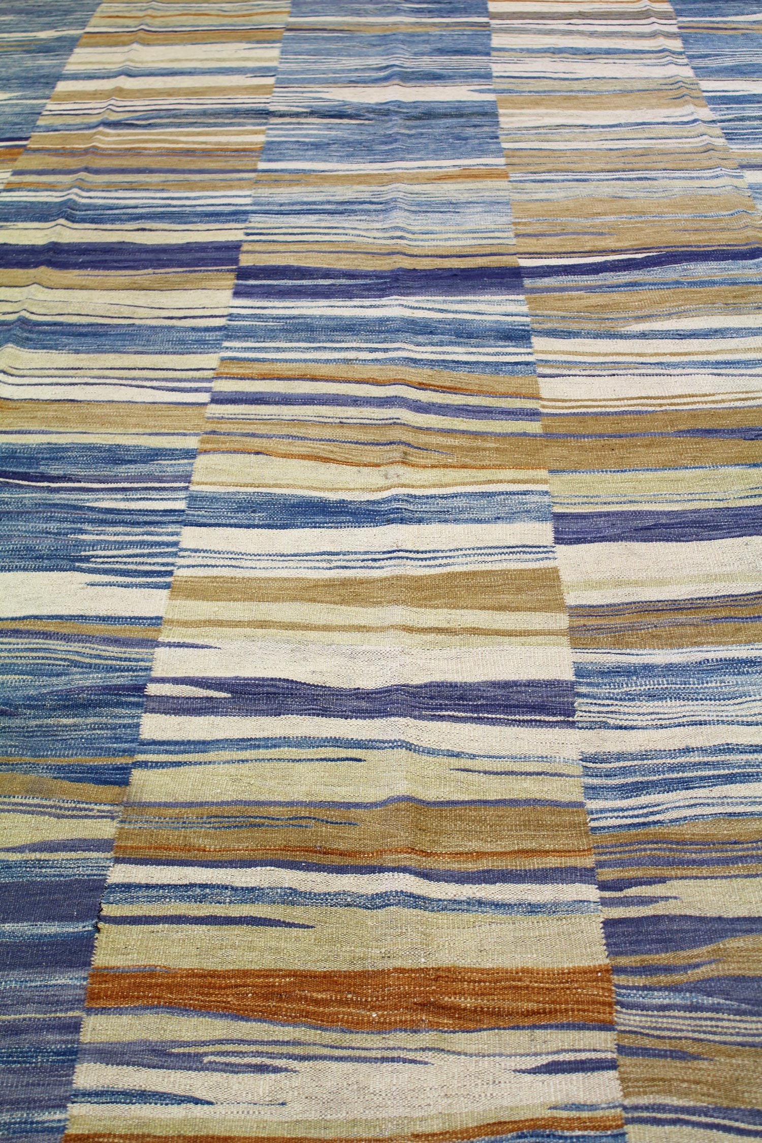 Looking to take your home’s interior design up a notch (or several)? Nothing does it better than a striking statement piece — such as our luxurious Modern Kilim Handwoven Contemporary Rug (J63198). This 9' 1" X 12' 1" contemporary Modern Flatweave rug has a Modern Kilim design in blue, periwinkle and gold. Constructed of wool flatweave on a wool foundation, you know that this rug not only looks great but feels nice and will stand the tests of time and traffic. Quality and style are hallmarks of new handwoven Afghani rugs — so you’ll be admiring this one for years to come! All you have to do is claim your Modern Kilim Handwoven Contemporary Rug today.