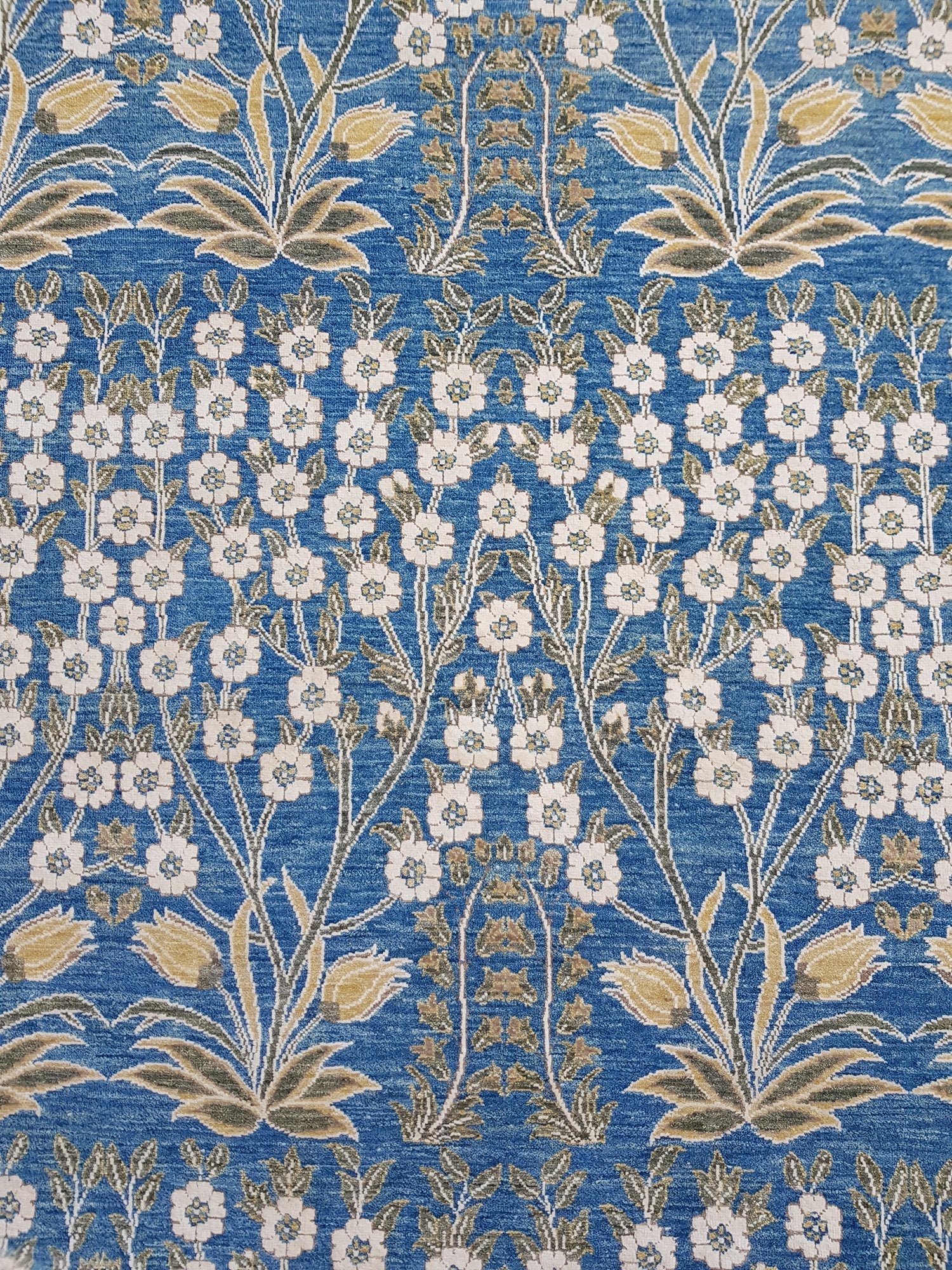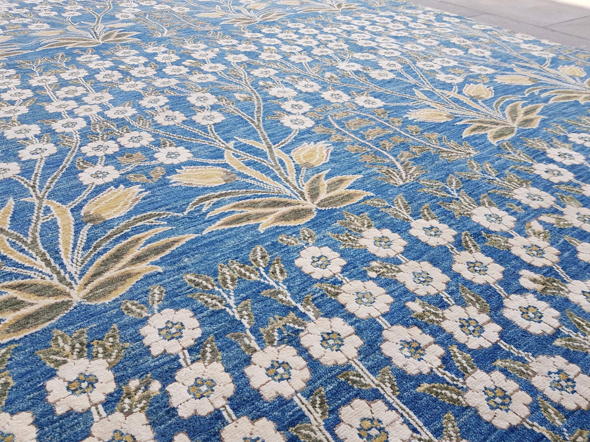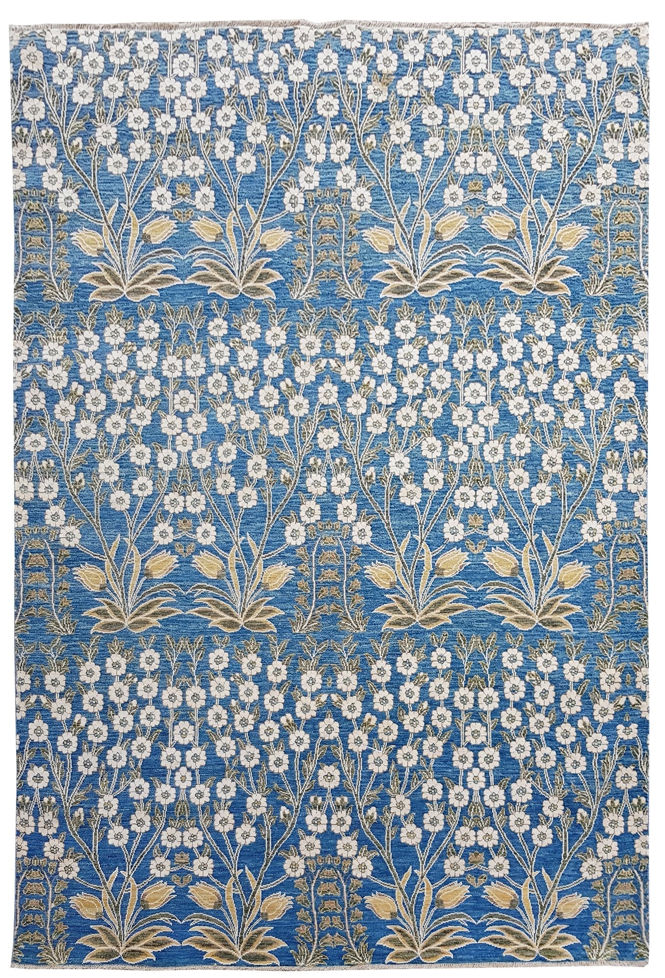 Show off your exquisite taste with our beautiful Moghul Flower Handwoven Contemporary Rug (J64111). It’s a prime example of a contemporary Botanical done right and will add a unique, polished look to your space. Crafted mainly in blue and complemented with medium blue and olive, the Moghul Flower design really pops. The wool & silk pile surface is resilient yet comfortable and the cotton foundation provides a sturdy base. This 5' 1" X 7' 2" handwoven rug is of new construction and Afghanistan origin. All in all, you’re going to love this piece and it’s going to be the perfect addition to your home. Make it happen today — with your own Moghul Flower Handwoven Contemporary Rug.