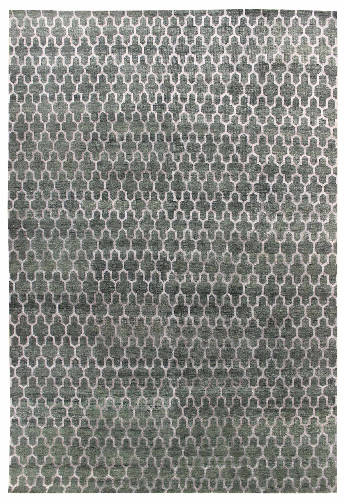Make a grand statement in your home with our stunning Morac Handwoven Closeout Rug (J42363). This transitional handwoven Indian rug has an alluring Repeating style with its Morac design in rich hues of green and grey. Wool & Viscose pile on a cotton foundation make this new rug both sturdy and comfortable to the touch. At 12' 0" X 18' 0" in size, this rug will add just the right amount of pizzazz to any room. All in, you’ll be loving this rug today, tomorrow, and beyond. So, go ahead — get your Morac Handwoven Closeout Rug today!