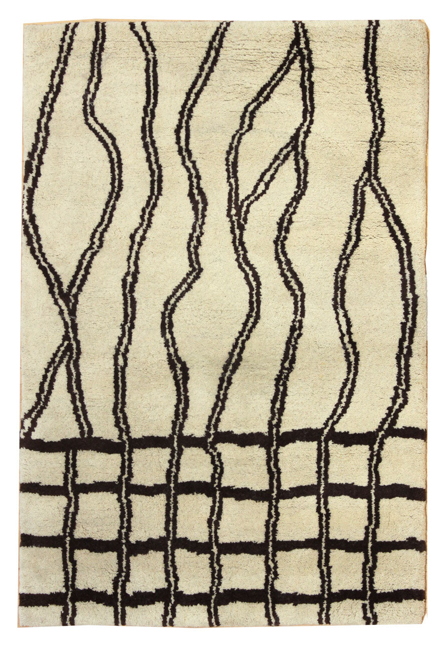 Get ready to fall in love with our Moroccan Handwoven Tribal Rug (J25901)! This tribal Moroccan & African piece is ivory on white with brown accents. The Moroccan design and 4' 7" X 6' 5" size make this new handwoven Indian rug a gorgeous addition to any space. Its wool pile surface on a wool foundation means this rug is incredibly durable — you’ll be able to cherish it for years to come. Get your Moroccan Handwoven Tribal Rug today!
