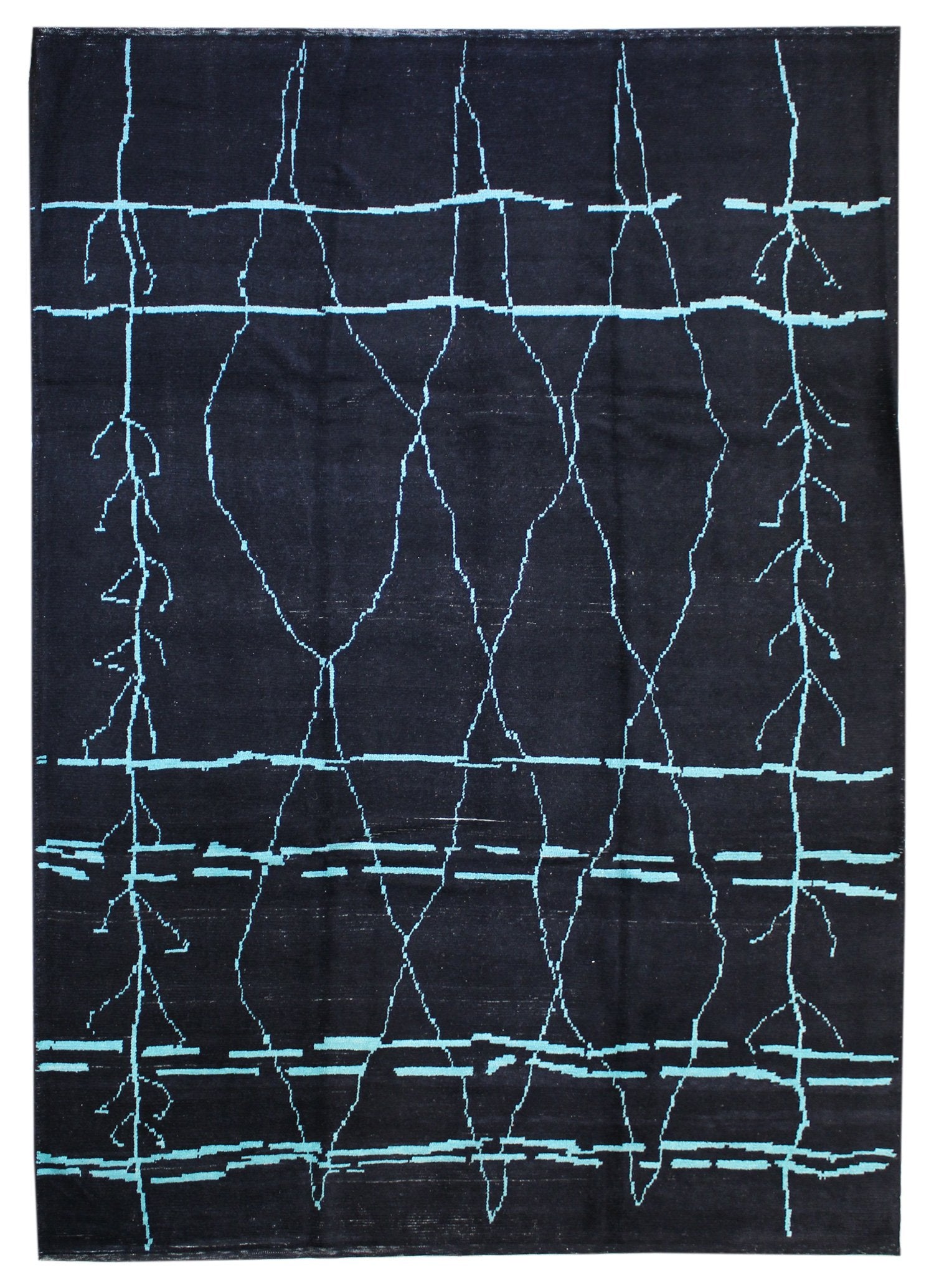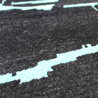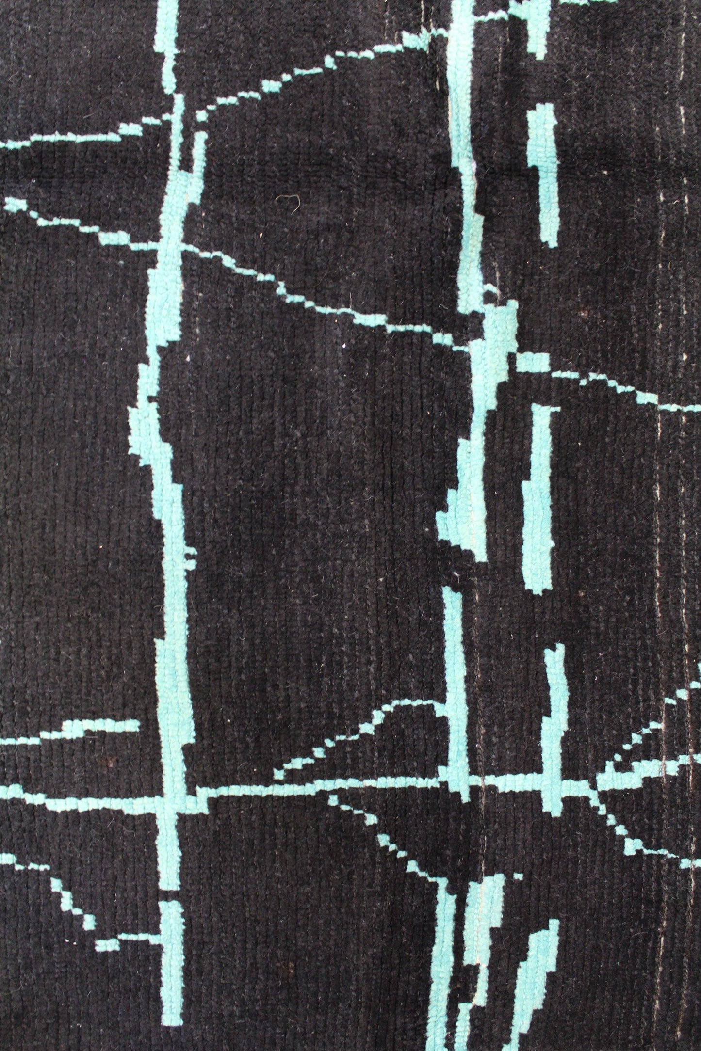 One of the fastest and easiest ways to breathe new life into your home’s décor is to add a stunning floor covering, like our Turkish Moroccan Handwoven Tribal Rug (J58986). This tribal Moroccan & African piece is black with turquoise accents. This new handwoven rug features a Moroccan design motif, crafted in durable wool pile on a cotton foundation. Plus, its size — 9' 2" X 13' 5" — will provide ample coverage. This means years of comfort, style, and enjoyment for you and your loved ones. Take the next step and get your Moroccan Handwoven Tribal Rug right now.