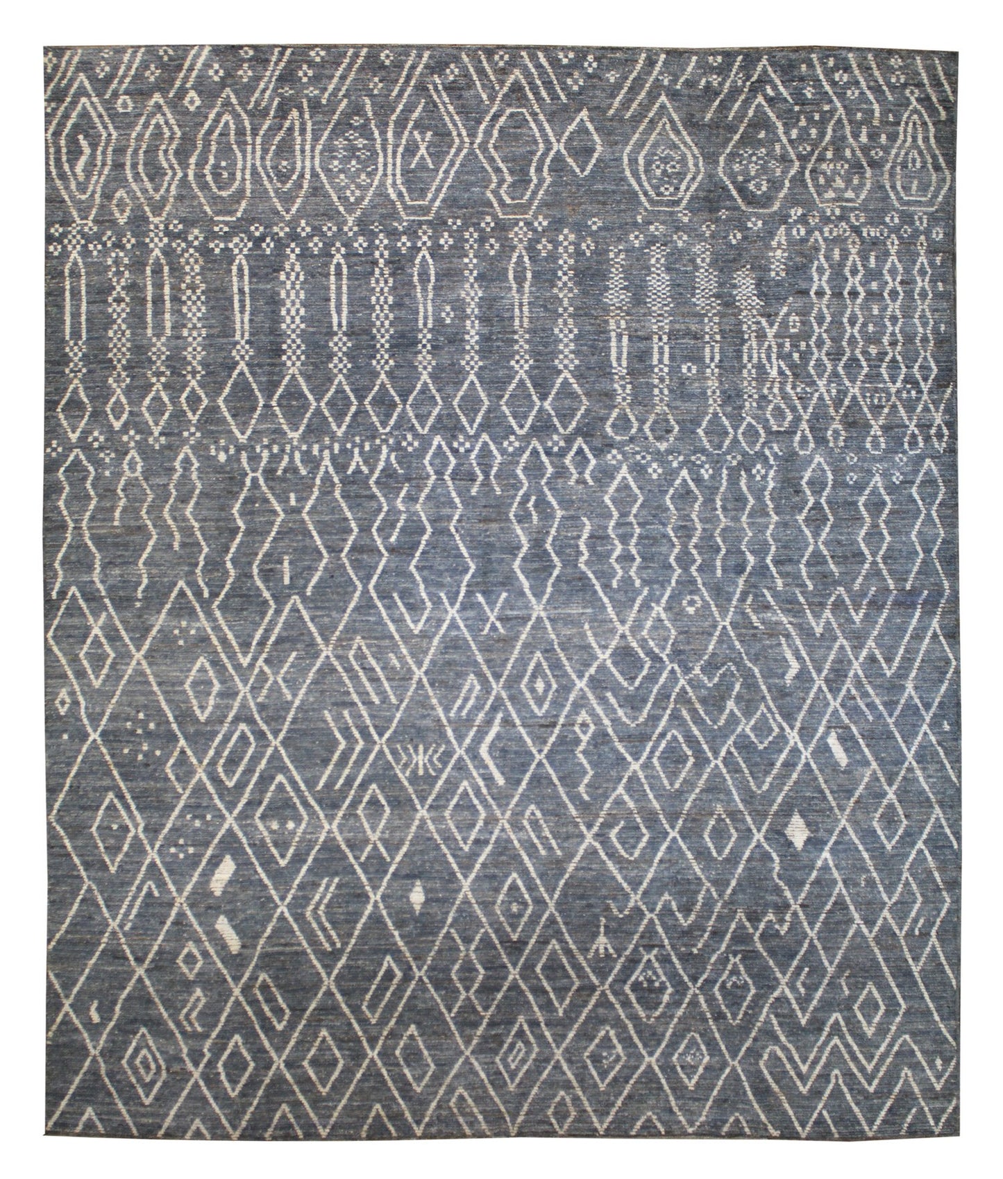 One of the fastest and easiest ways to breathe new life into your home’s décor is to add a stunning floor covering, like our Afghani Moroccan Handwoven Tribal Rug (J61833). This tribal Moroccan & African piece is blue on slate with ivory accents. This new handwoven rug features a Moroccan design motif, crafted in durable wool pile on a cotton foundation. Plus, its size — 10' 9" X 13' 9" — will provide ample coverage. This means years of comfort, style, and enjoyment for you and your loved ones. Take the next step and get your Moroccan Handwoven Tribal Rug right now.