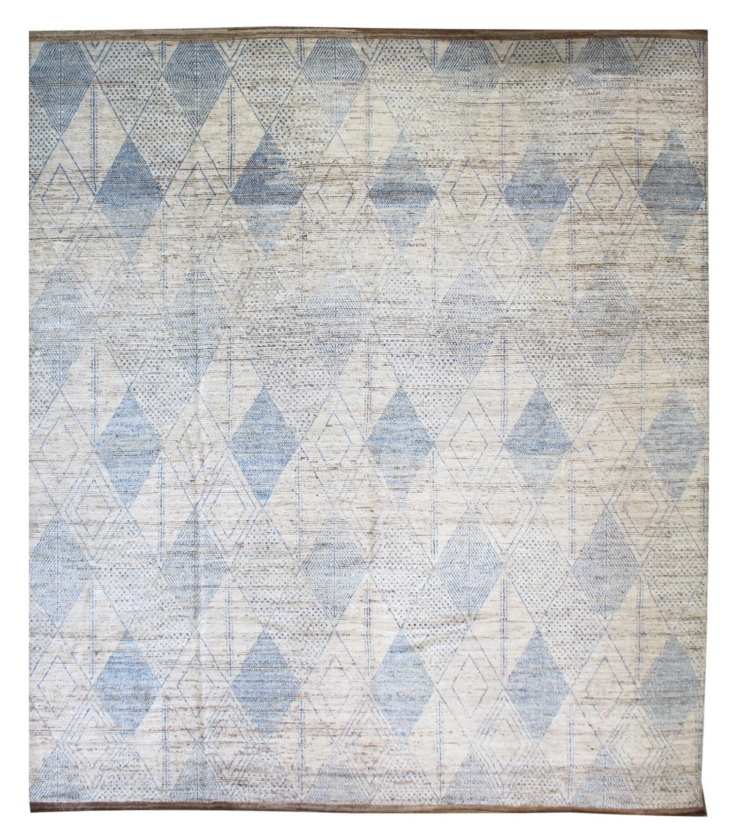 One of the fastest and easiest ways to breathe new life into your home’s décor is to add a stunning floor covering, like our Afghani Moroccan Handwoven Tribal Rug (J61834). This tribal Moroccan & African piece is ivory with blue accents. This new handwoven rug features a Moroccan design motif, crafted in durable wool pile on a cotton foundation. Plus, its size — 12' 5" X 15' 2" — will provide ample coverage. This means years of comfort, style, and enjoyment for you and your loved ones. Take the next step and get your Moroccan Handwoven Tribal Rug right now.