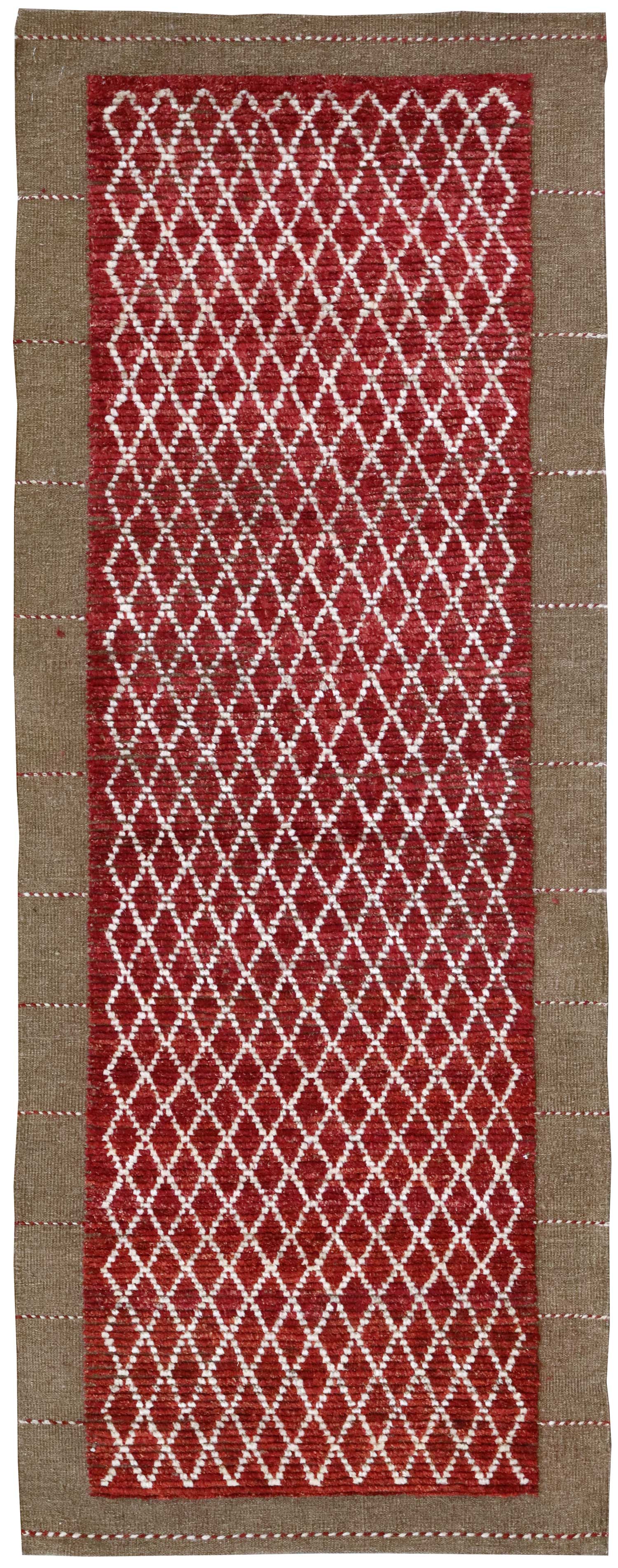 Show off your exquisite taste with our beautiful Moroccan Handwoven Tribal Rug (J65437). It’s a prime example of a tribal Moroccan & African done right and will add a unique, polished look to your space. Crafted mainly in red and complemented with rust and ivory, the Moroccan design really pops. The wool pile surface is resilient yet comfortable and the cotton foundation provides a sturdy base. This 2' 9" X 7' 0" handwoven rug is of new construction and Afghani origin. All in all, you’re going to love this piece and it’s going to be the perfect addition to your home. Make it happen today — with your own Moroccan Handwoven Tribal Rug.