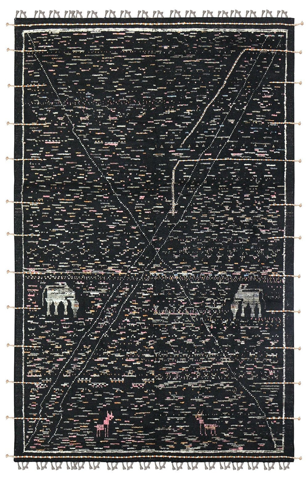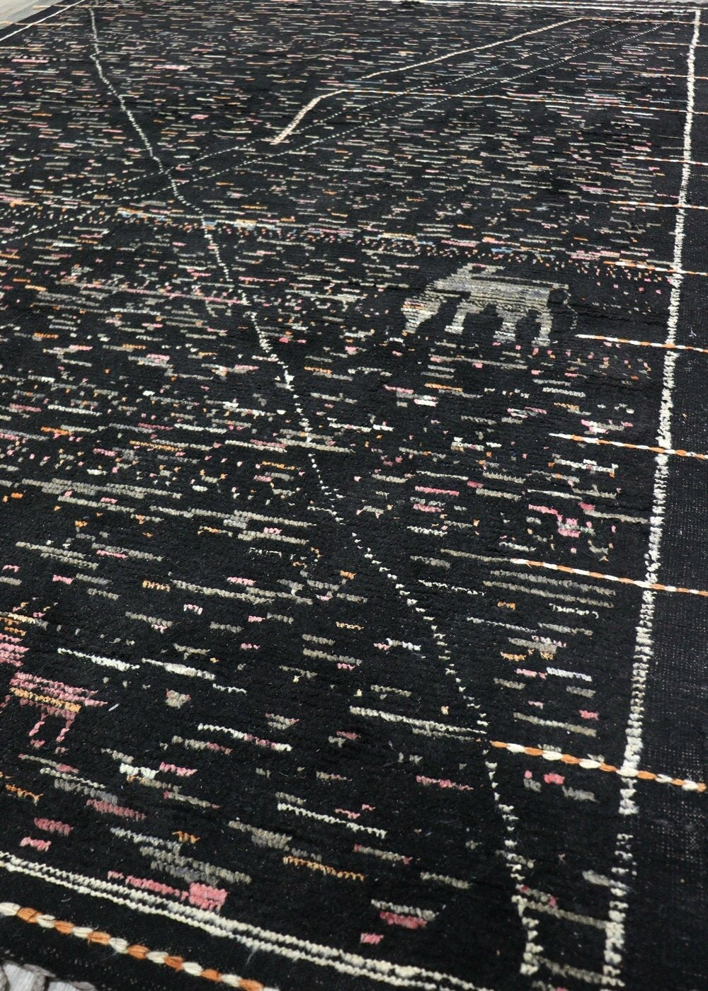 Make your house truly feel like home with our Moroccan Handwoven Tribal Rug (J68174). It's new and tribal. It’s black on ebony with orange accent colors. It’s a Moroccan & African style rug with a Moroccan motif. All things you gravitate towards when it comes to aesthetics and design in your space. Being a 8' 11" X 12' 8" rug of wool pile on a wool foundation, you can rest assured that this piece will do more than just make the visual impact and create the vibe you want. It comes from the fine Afghanistan tradition of handwoven rugmaking, meaning this rug will serve you well and look terrific for years. Add that extra special personal touch today with your own Moroccan Handwoven Tribal Rug.