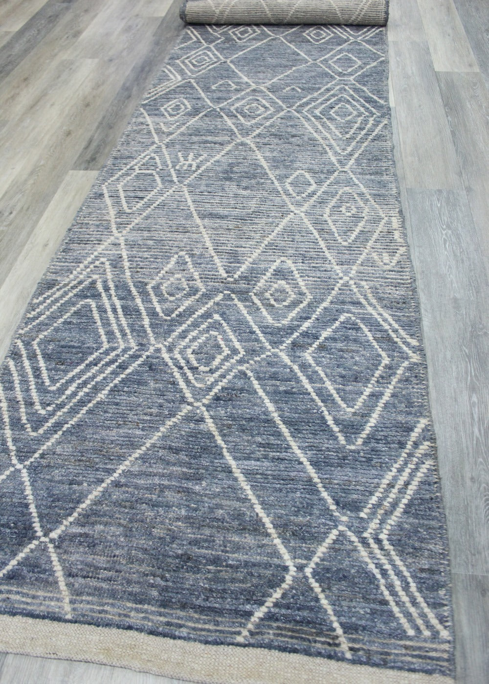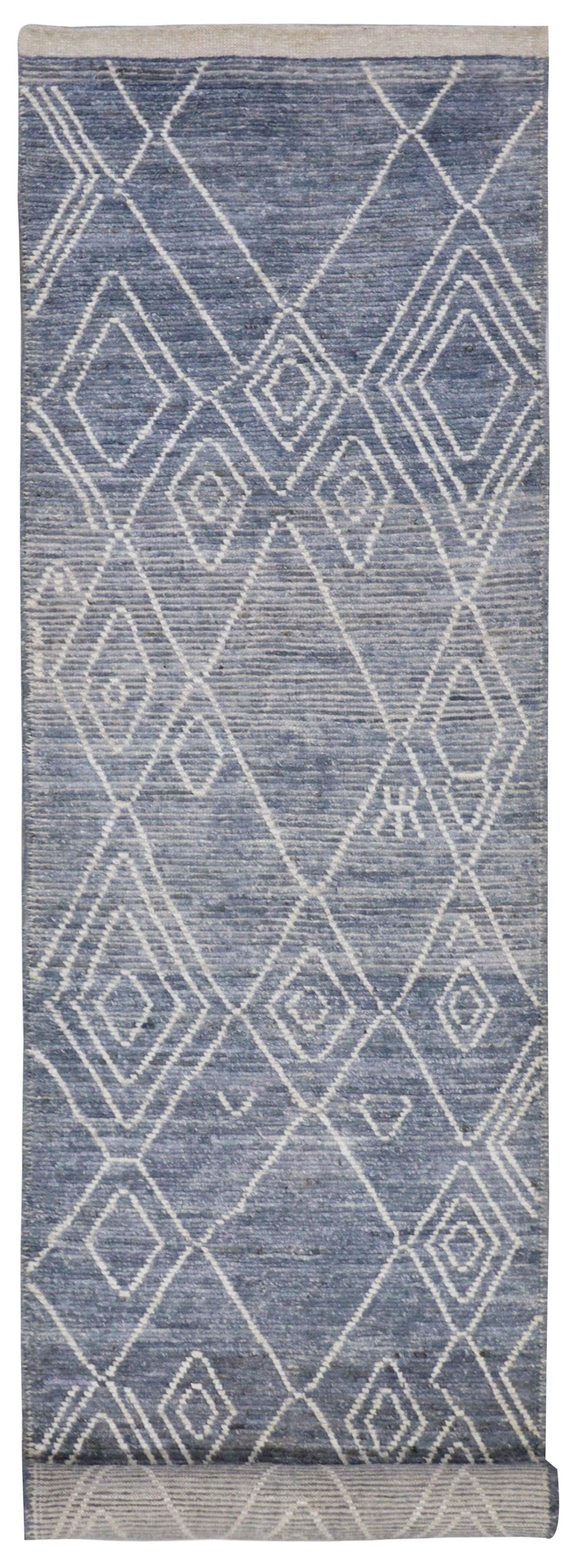 Make your house truly feel like home with our Moroccan Handwoven Tribal Rug (J68800). It's new and tribal. It’s blue on bluestone with ivory accent colors. It’s a Moroccan & African style rug with a Moroccan motif. All things you gravitate towards when it comes to aesthetics and design in your space. Being a 3' 1" X 13' 3" rug of wool pile on a cotton foundation, you can rest assured that this piece will do more than just make the visual impact and create the vibe you want. It comes from the fine Afghani tradition of handwoven rugmaking, meaning this rug will serve you well and look terrific for years. Add that extra special personal touch today with your own Moroccan Handwoven Tribal Rug.