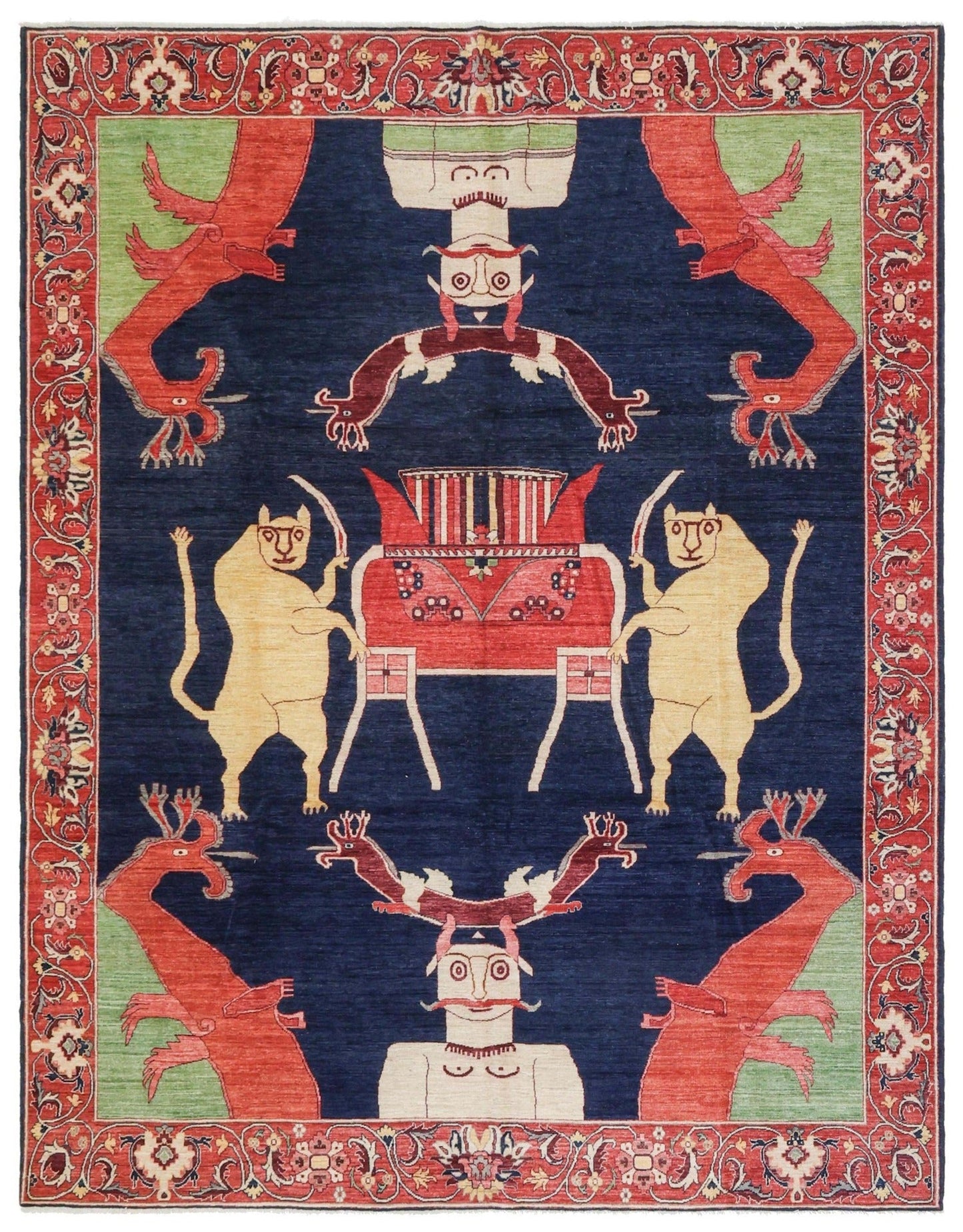 Mughal Animal Grotesques Handwoven Contemporary Rug, J74210