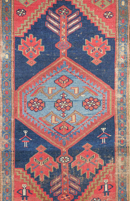 Vintage 1915 Nomadic Persian & Turkish Tribal Persian N. W. Persian 2' 10" X 11' 8" Blue Rug