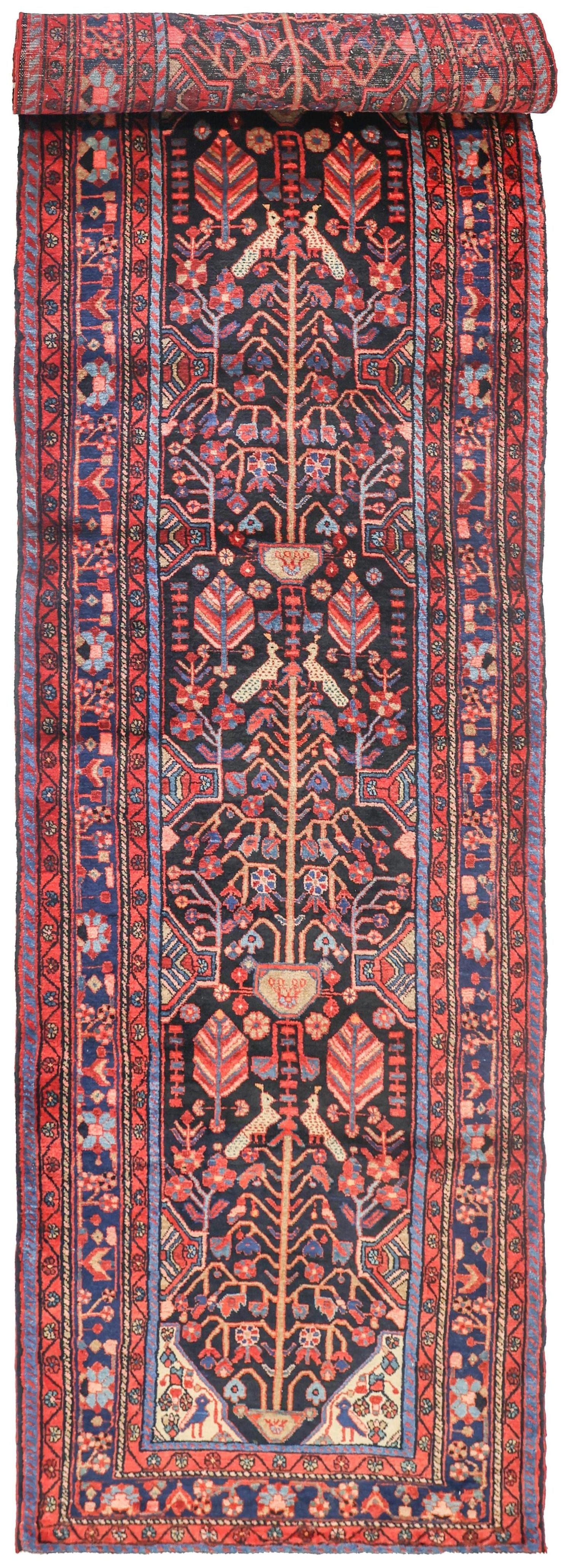 Vintage 1960 Nomadic Persian & Turkish Tribal Persian Nahavand 3' 3" X 15' 9" Blue Rug