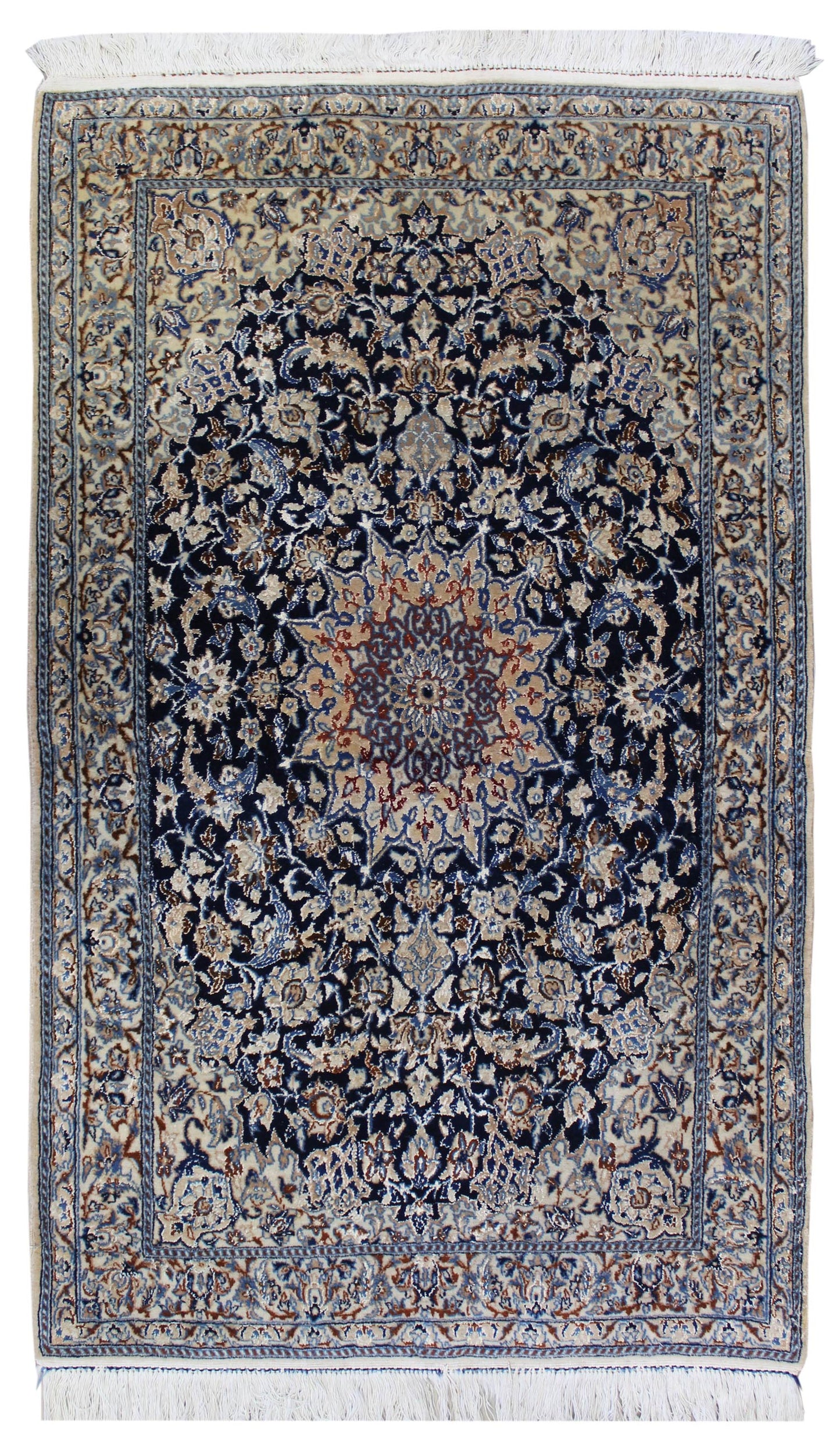 Looking to take your home’s interior design up a notch (or several)? Nothing does it better than a striking statement piece — such as our luxurious Nain Handwoven Traditional Rug (J63630). This 2' 7" X 4' 1" traditional Formal Classic Persian rug has a Nain design in blue, navy and ivory. Constructed of wool & silk pile on a cotton foundation, you know that this rug not only looks great but feels nice and will stand the tests of time and traffic. Quality and style are hallmarks of new handwoven Persian rugs — so you’ll be admiring this one for years to come! All you have to do is claim your Nain Handwoven Traditional Rug today.