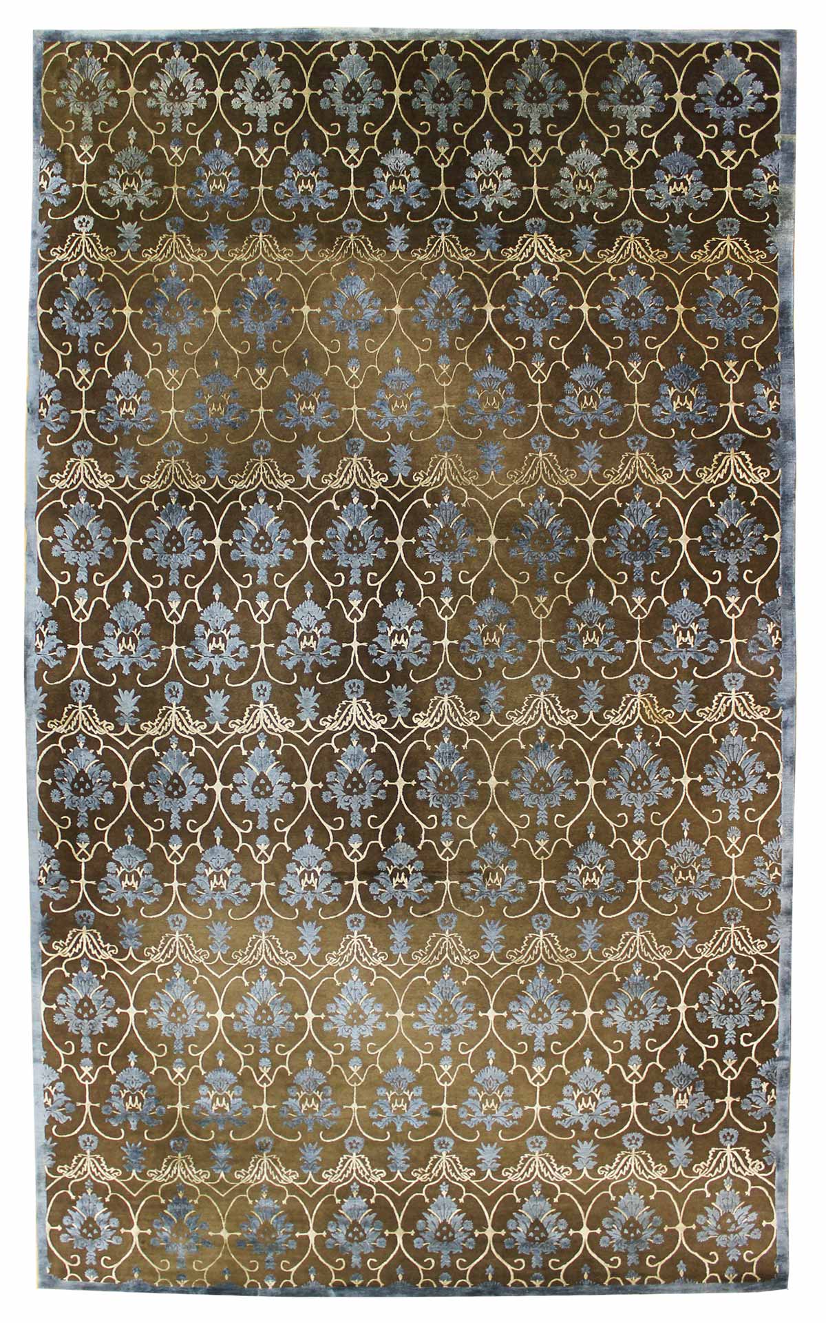 Get ready to fall in love with our Nouveau Handwoven Transitional Rug (51009)! This transitional New Classical piece is brown on chocolate with blue accents. The Nouveau design and 12' 0" X 20' 2" size make this new handwoven Nepalese rug a gorgeous addition to any space. Its wool & silk pile surface on a cotton foundation means this rug is incredibly durable — you’ll be able to cherish it for years to come. Get your Nouveau Handwoven Transitional Rug today!