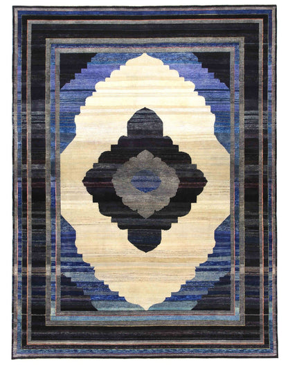 New New Classical Transitional Indian Open Field 8' 10" X 12' 0" Grey Rug
