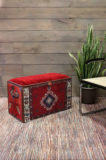New Nomadic Persian & Turkish Tribal Persian Ottoman Trunk 1' 5" X 2' 5" Red