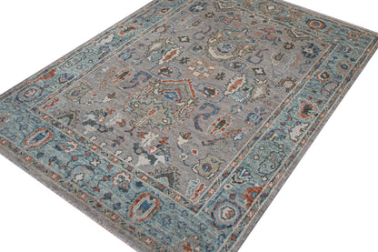 New Large Scale Floral Traditional Indian Oushak 4 8' 3" X 9' 11" Grey Rug