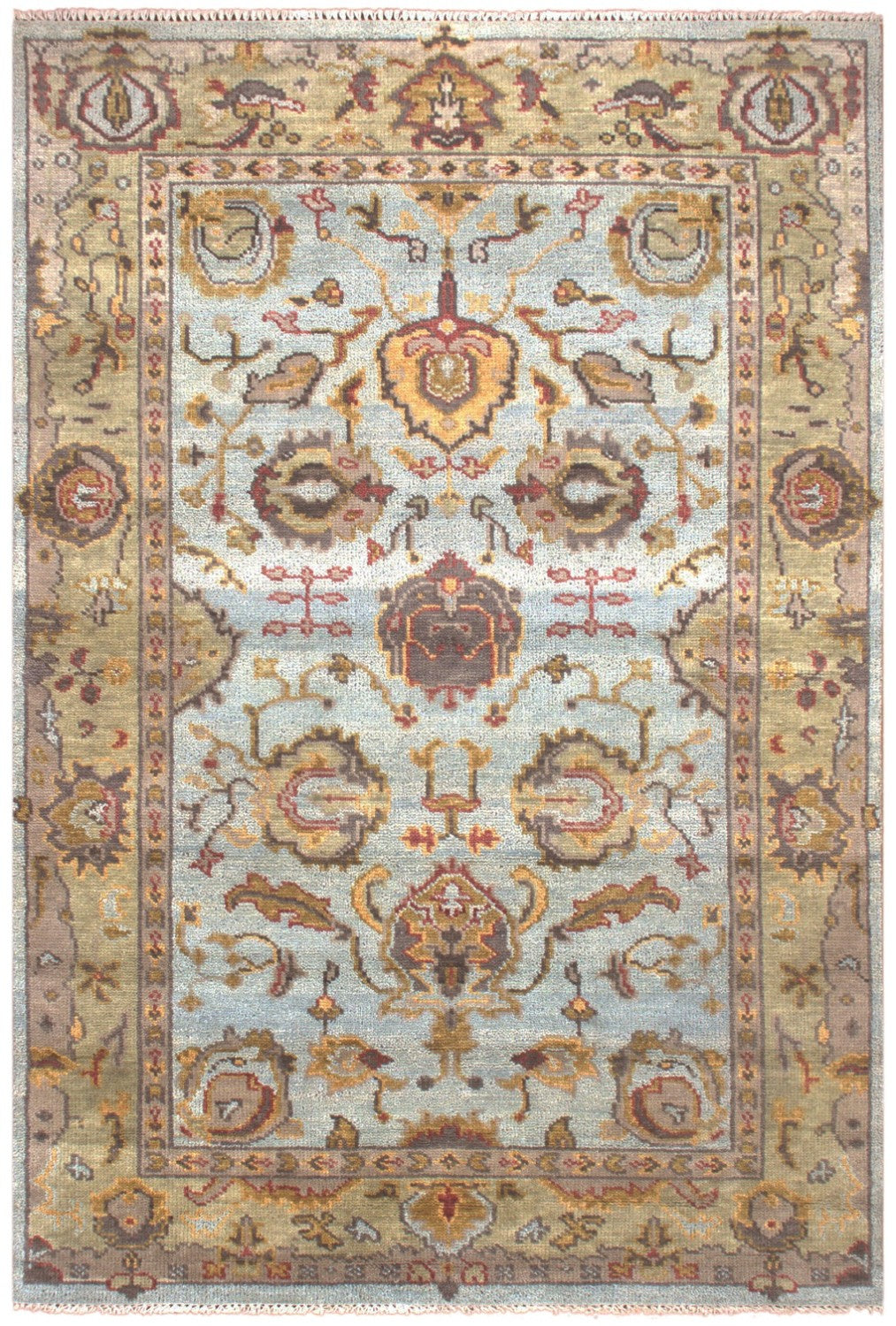 New Large Scale Floral Traditional Indian Oushak 5 6' 2" X 9' 0" Blue Rug