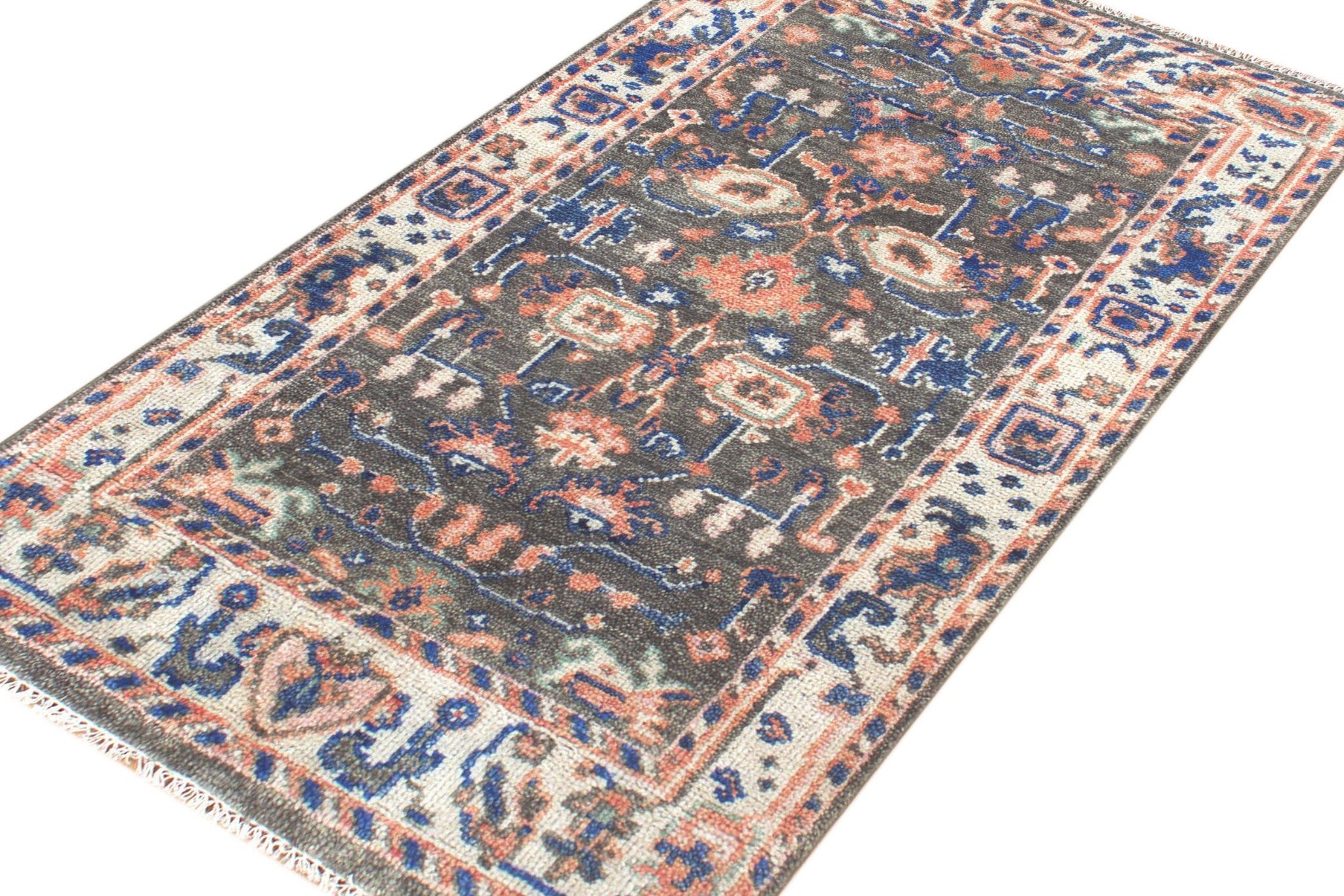 New Large Scale Floral Traditional Indian Oushak 6 4' 0" X 5' 10" Grey Rug