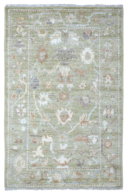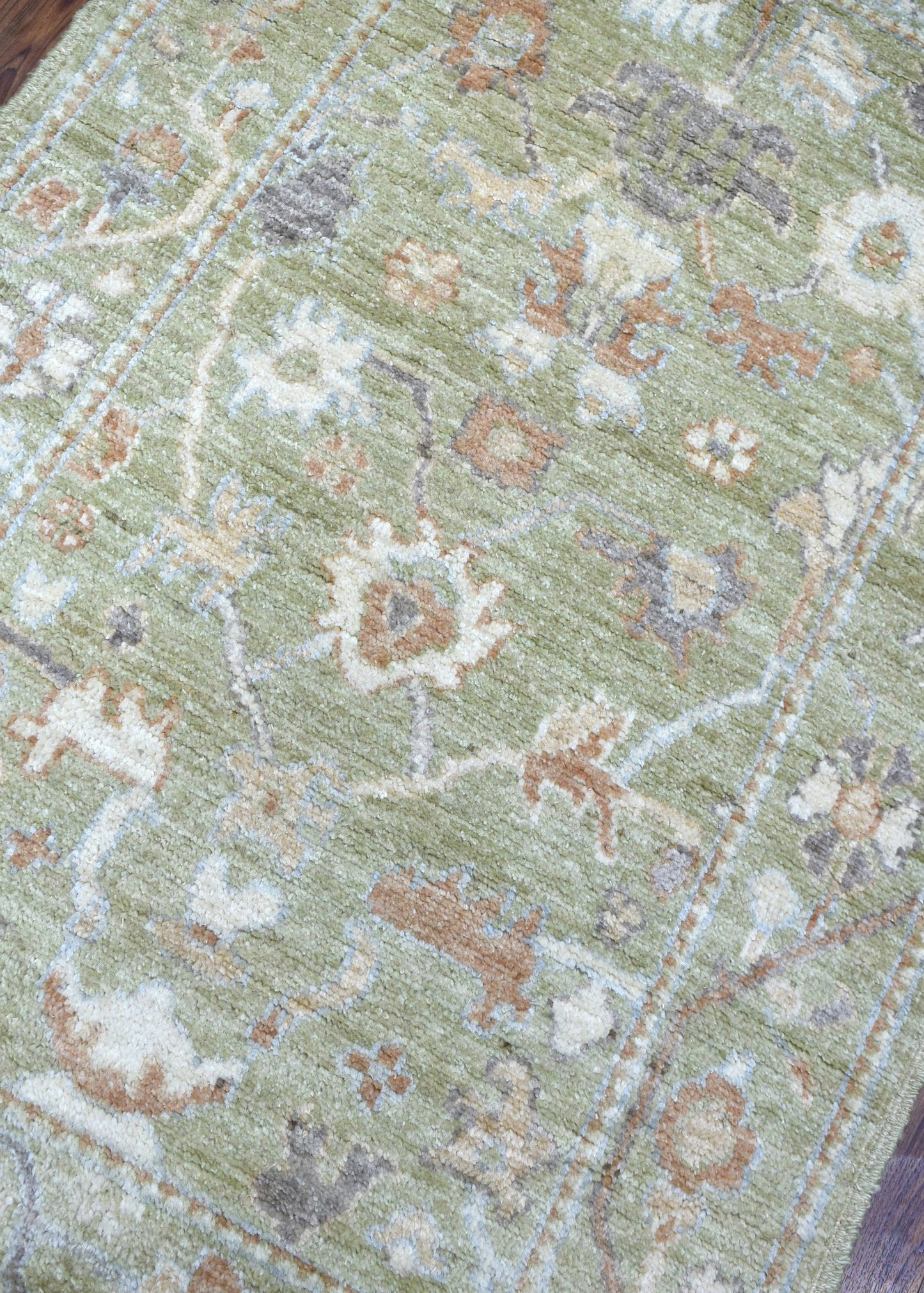 Show off your exquisite taste with our beautiful Oushak Handwoven Traditional Rug (J64217). It’s a prime example of a traditional Large Scale Floral done right and will add a unique, polished look to your space. Crafted mainly in green and complemented with pear and bronze, the Oushak design really pops. The wool pile surface is resilient yet comfortable and the cotton foundation provides a sturdy base. This 3' 0" X 4' 7" handwoven rug is of new construction and Afghani origin. All in all, you’re going to love this piece and it’s going to be the perfect addition to your home. Make it happen today — with your own Oushak Handwoven Traditional Rug.