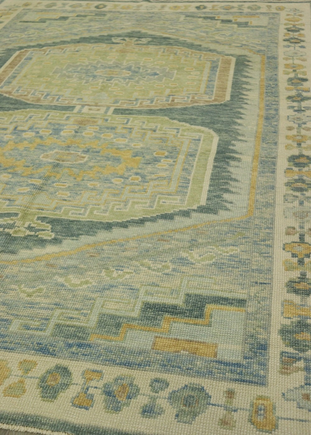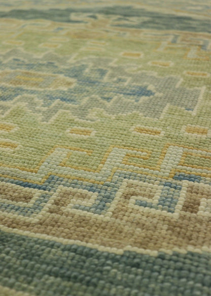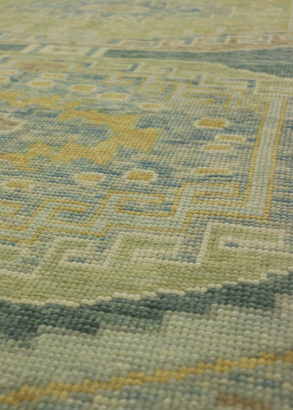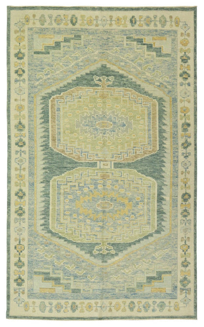 Make your house truly feel like home with our Oushak Handwoven Traditional Rug (J68557). It's new and traditional. It’s green on teal with blue accent colors. It’s a Large Scale Floral style rug with a Oushak motif. All things you gravitate towards when it comes to aesthetics and design in your space. Being a 5' 11" X 9' 1" rug of wool pile on a wool foundation, you can rest assured that this piece will do more than just make the visual impact and create the vibe you want. It comes from the fine Turkish tradition of handwoven rugmaking, meaning this rug will serve you well and look terrific for years. Add that extra special personal touch today with your own Oushak Handwoven Traditional Rug.