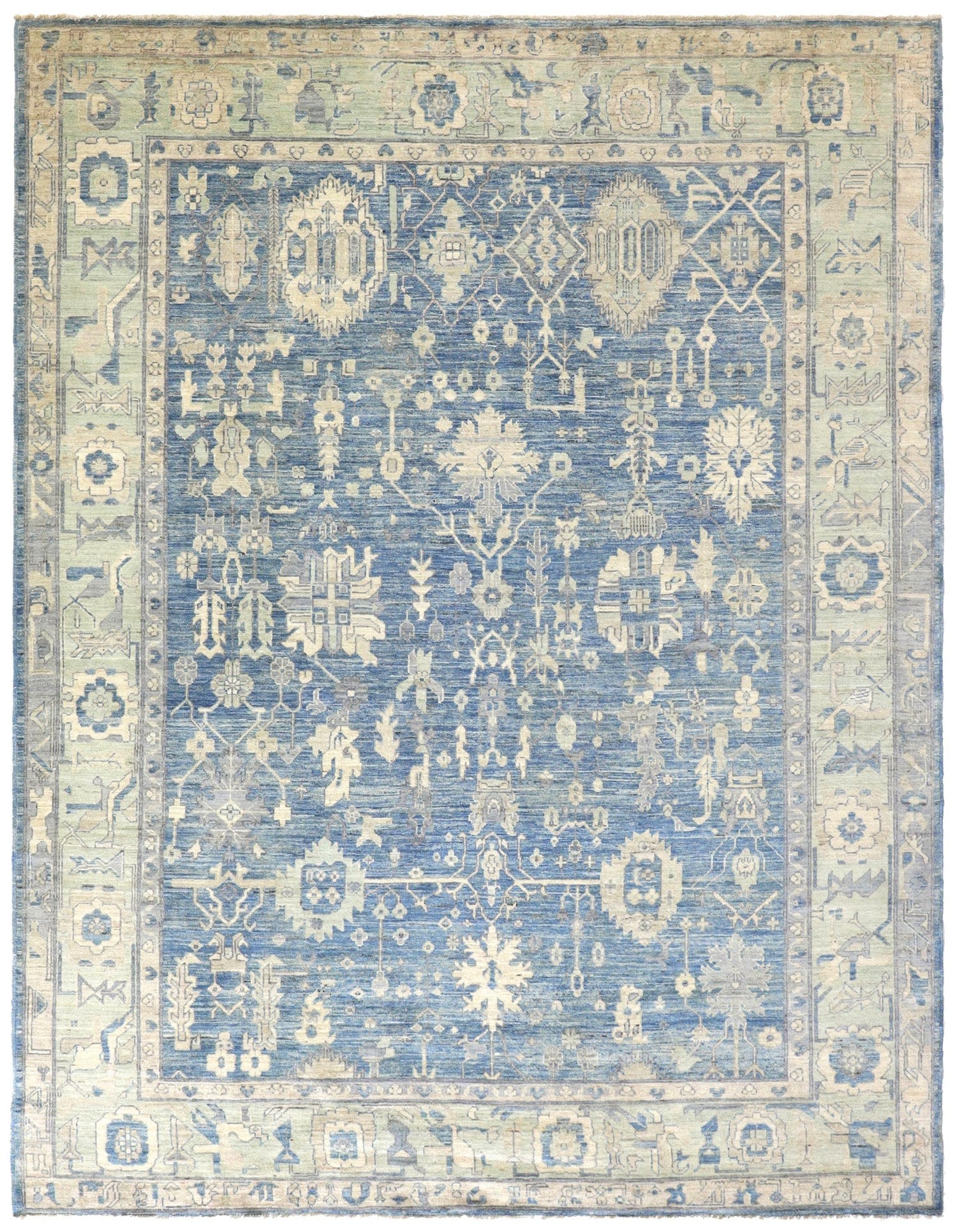 New Large Scale Floral Traditional Afghani Oushak 9' 0" X 11' 5" Blue Rug