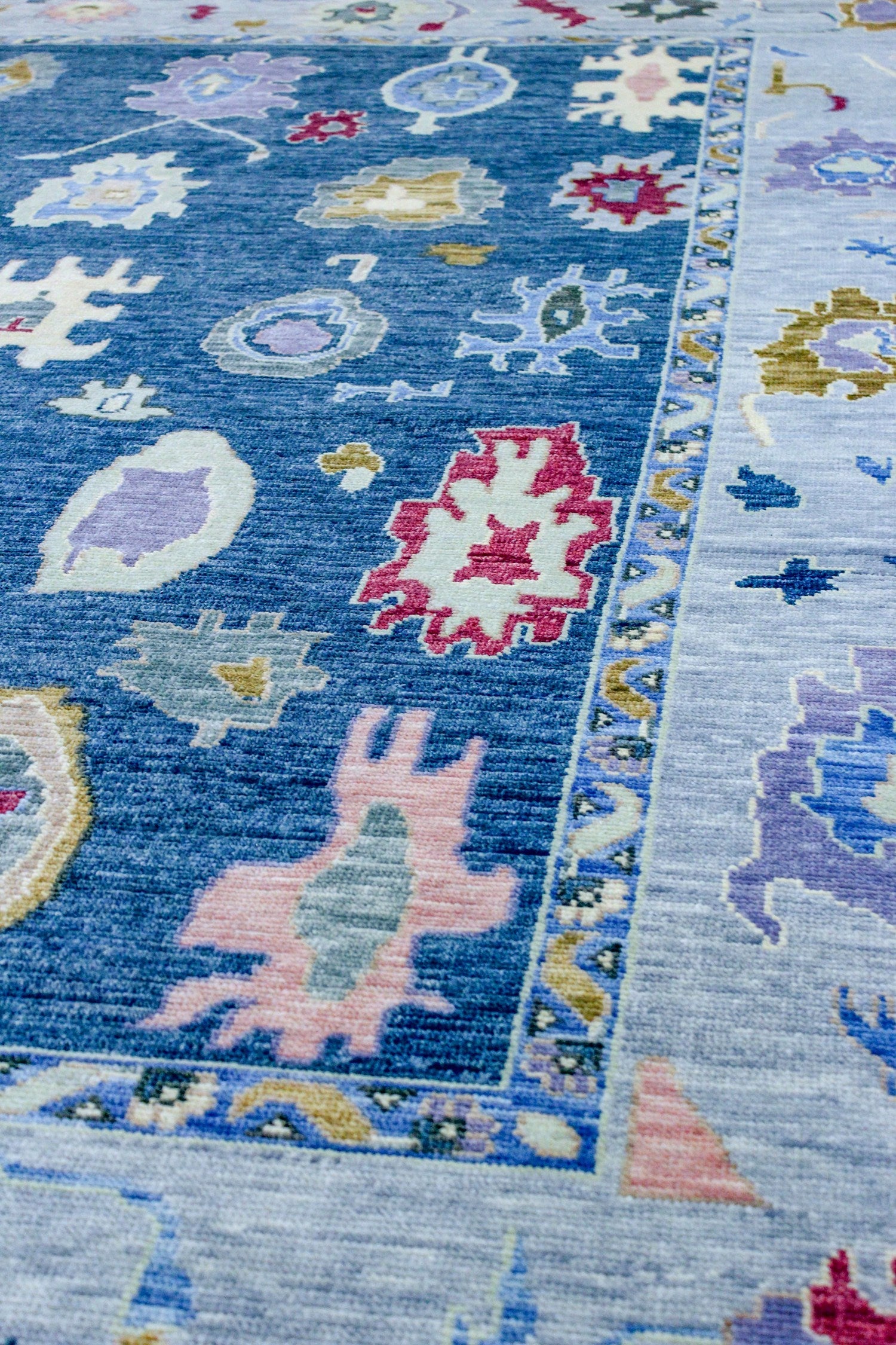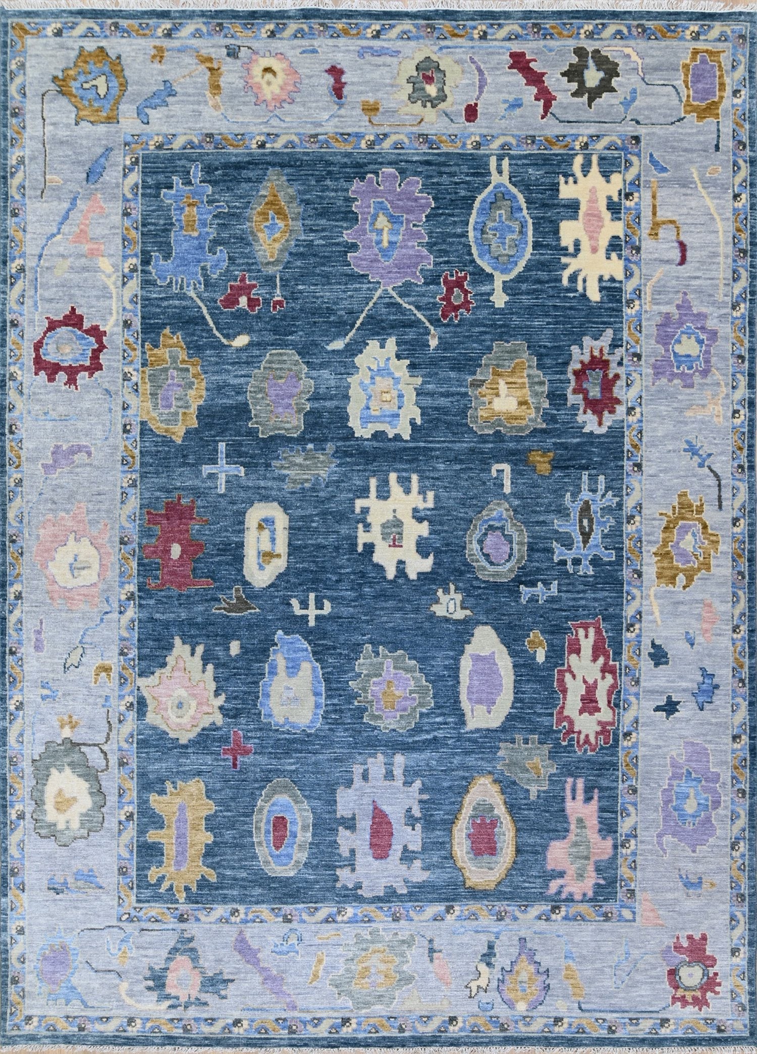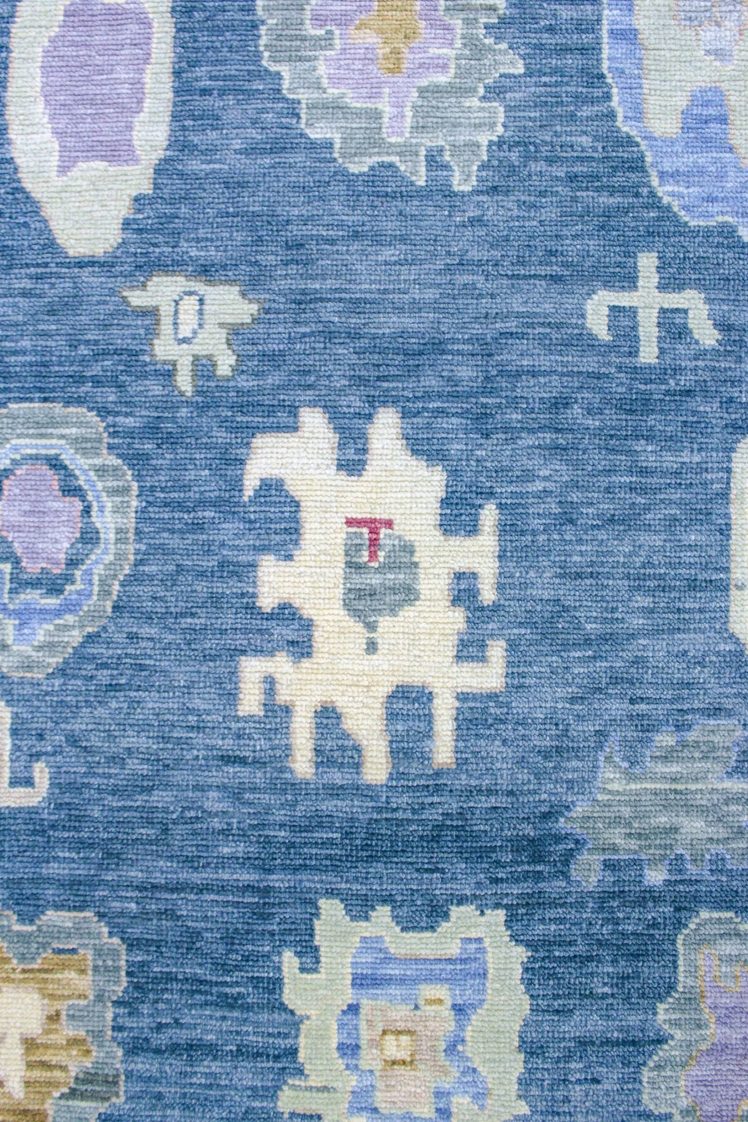Introducing the "Soft Melody" collection, this particular rug originates from India, known for its rich handwoven traditions. The design of this rug falls into the Oushak category, exhibiting a traditional style. The background color of the rug is denim, with a contrasting grey border. The main color featured in this rug is blue, creating a soothing and calming ambiance.