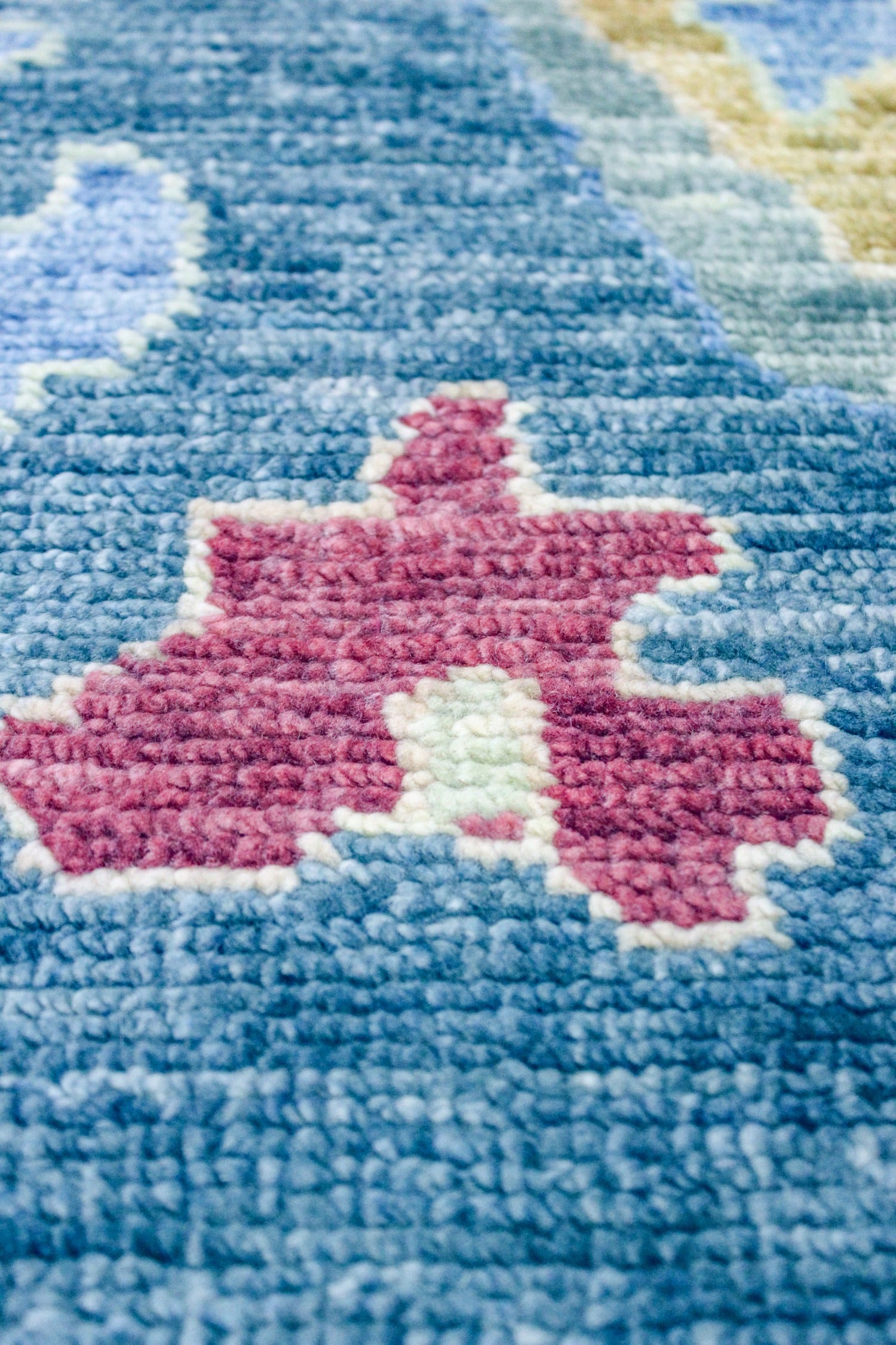 In summary, the Soft Melody Oushak rug from India combines traditional design elements and high-quality materials to create a visually stunning and durable piece. Its craftsmanship and unique characteristics make it a standout addition to any space.