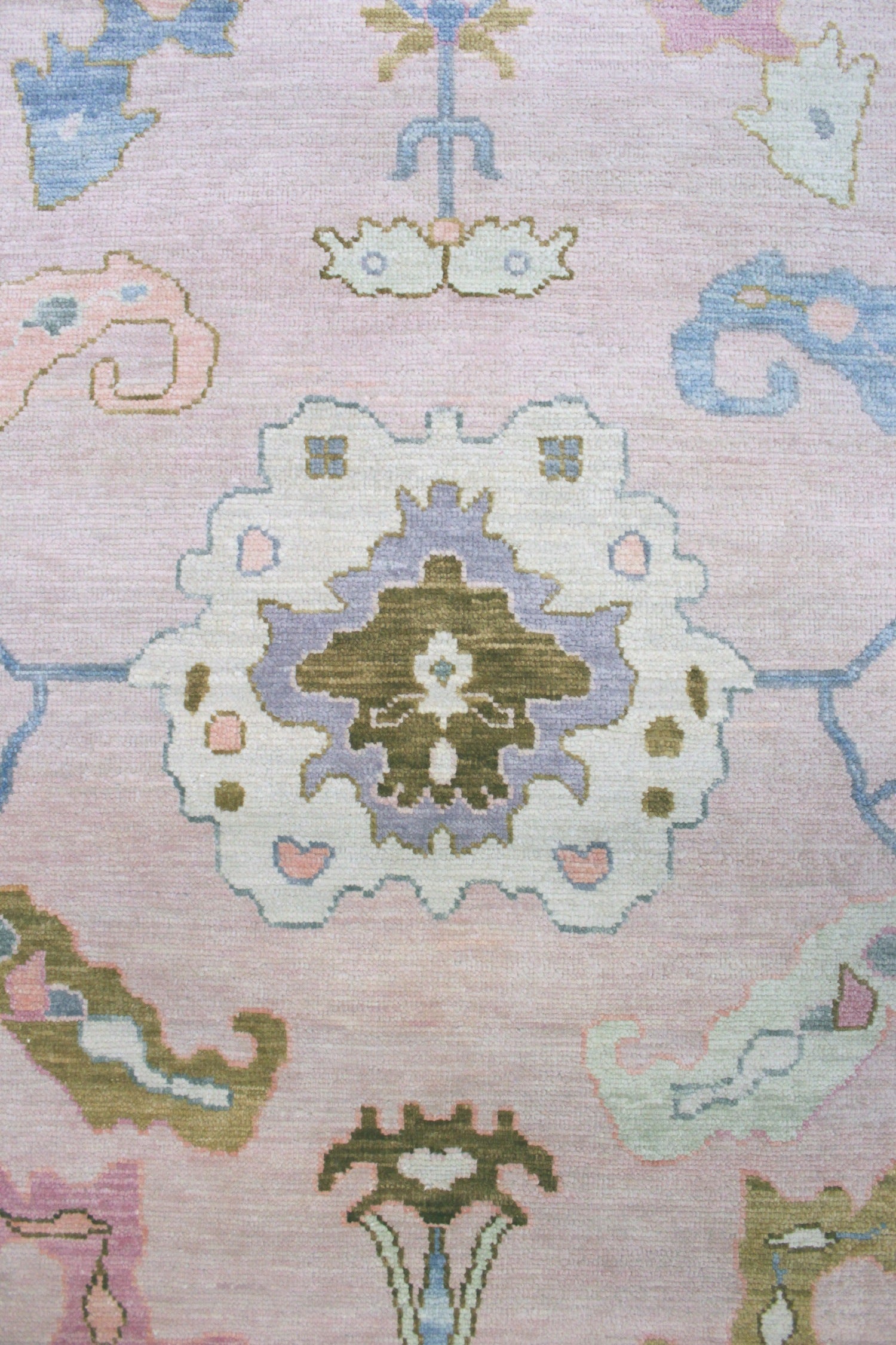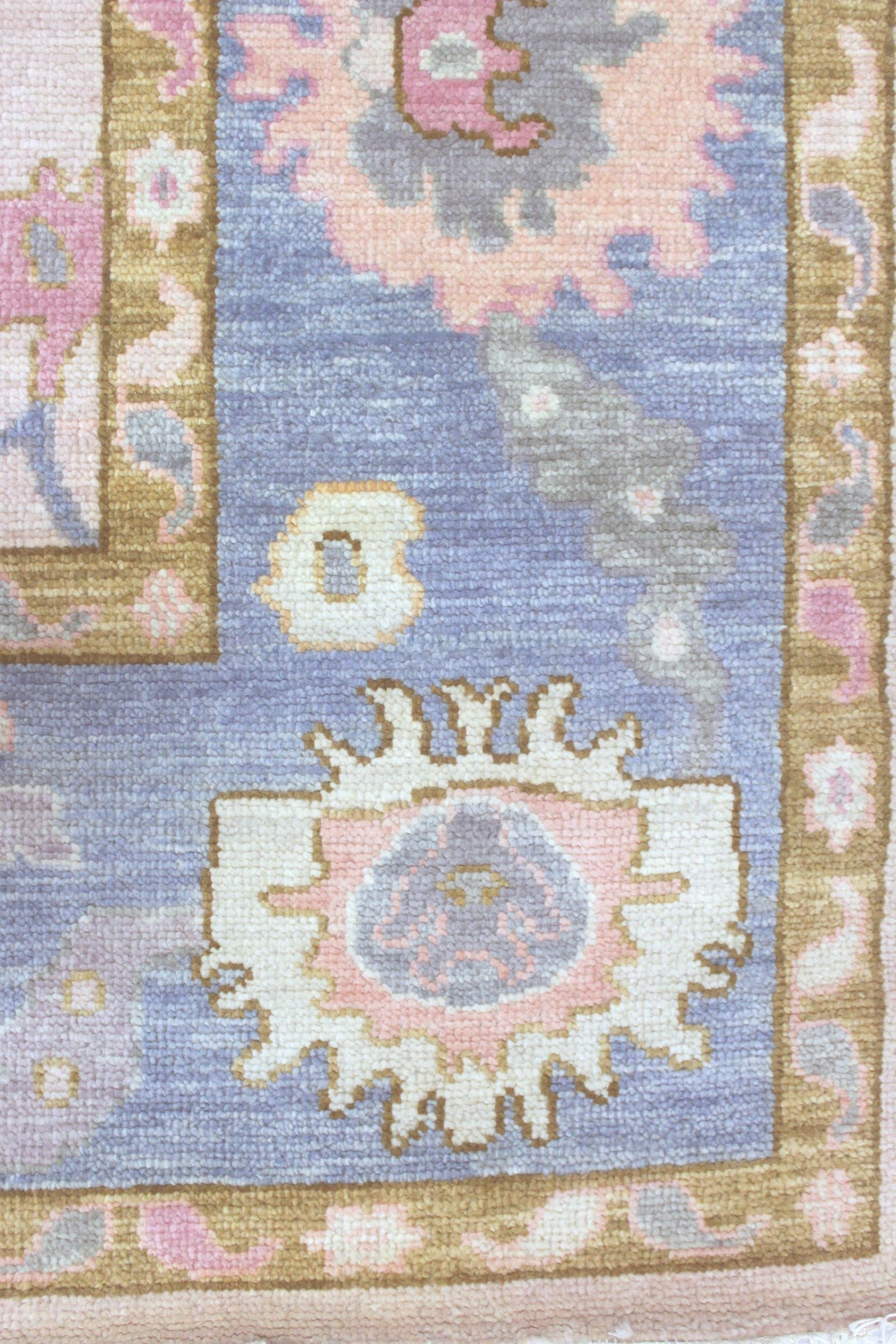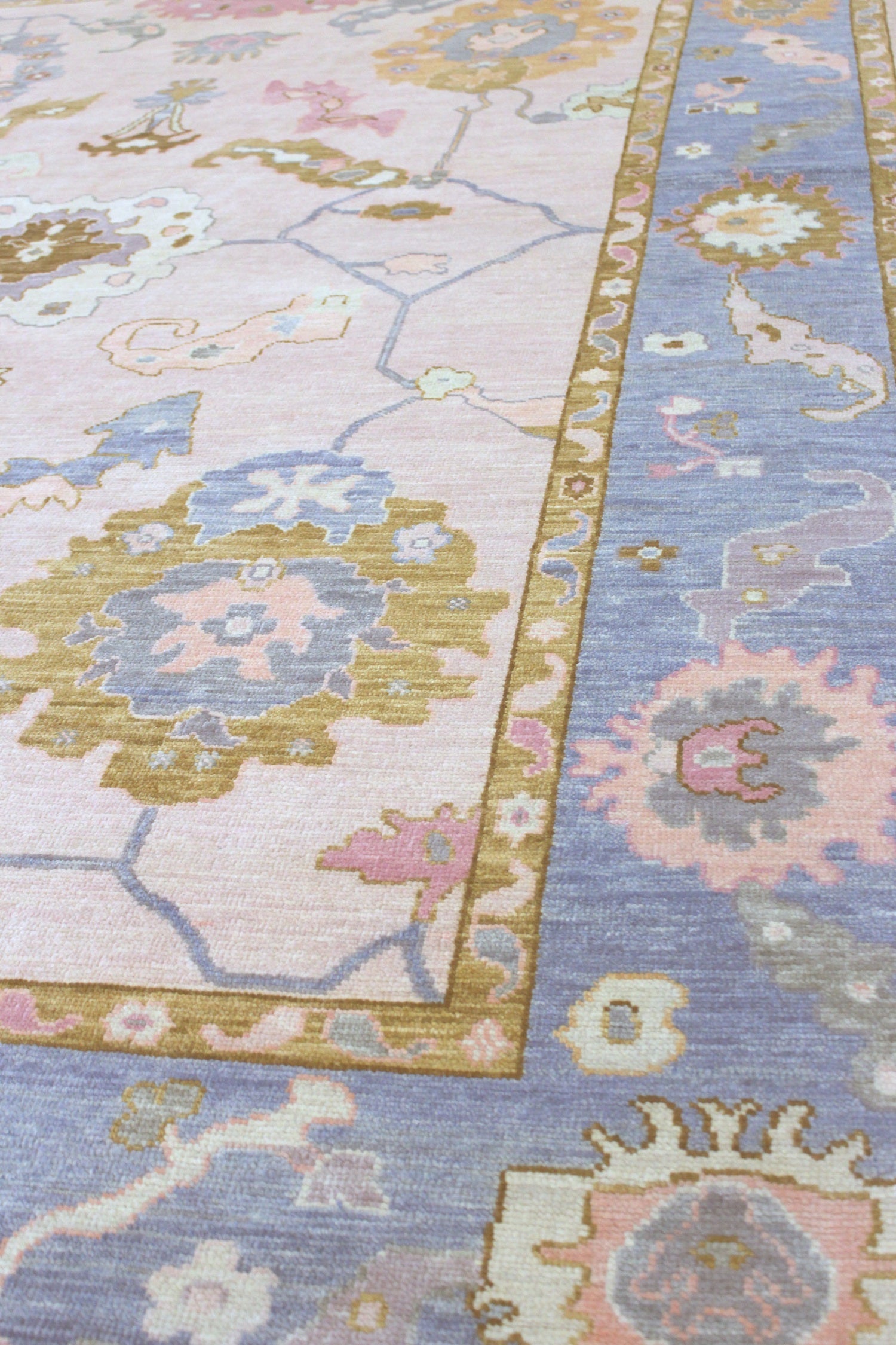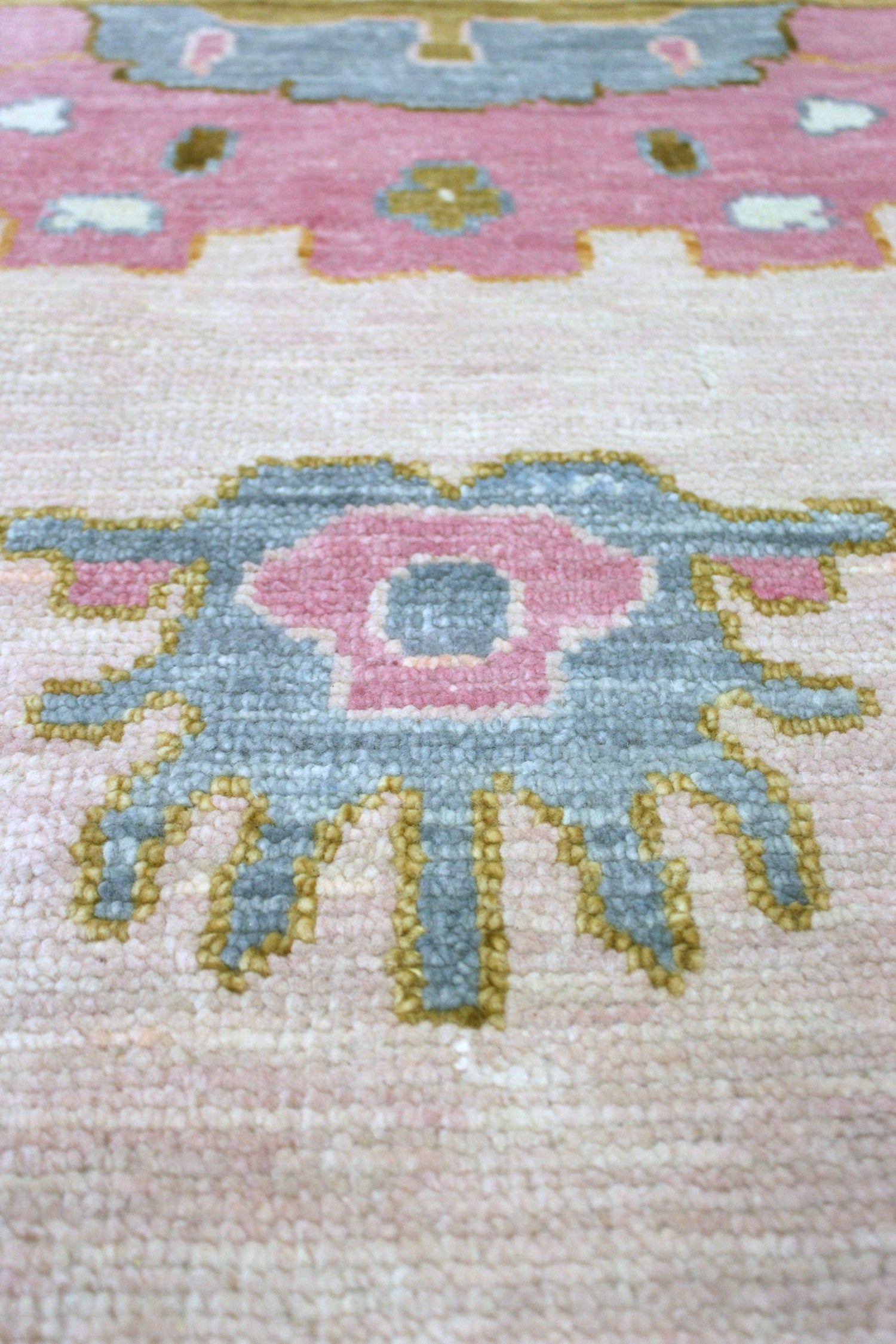 Soft Melody Oushak rugs are particularly sought after for their resemblance to traditional 19th-century Turkish Oushaks, thanks to their comparably large knots. The use of single-ply thick yarn contributes to their unique and delightful nubby texture, noticeable at the base of each knot.