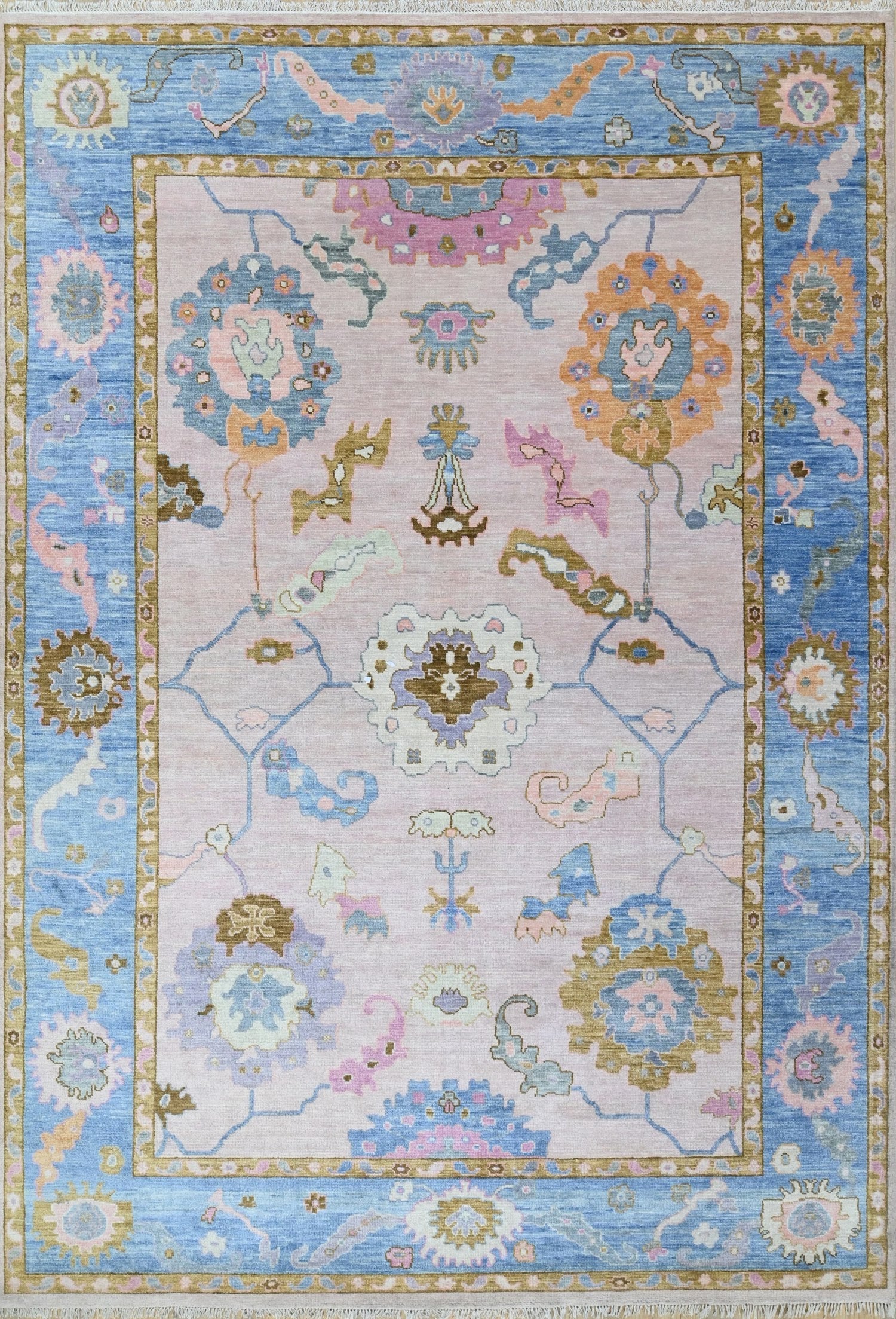Introducing the "Soft Melody" Oushak rug, originating from Agra, India, known for its rich tradition, exceptional craftsmanship, and innovative design. Handwoven by skilled artisans in their homes, these rugs showcase centuries-old techniques honed in the surrounding regions of Agra.