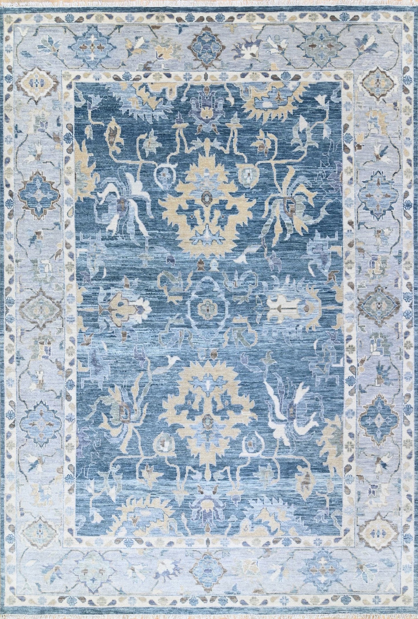 Introducing the "Soft Melody" Indian Oushak Rug, a traditional masterpiece showcasing the perfect blend of craftsmanship and innovation. Originating in and around the city of Agra, India, these rugs are predominantly handwoven by skilled artisans in their homes, utilizing centuries-old techniques.