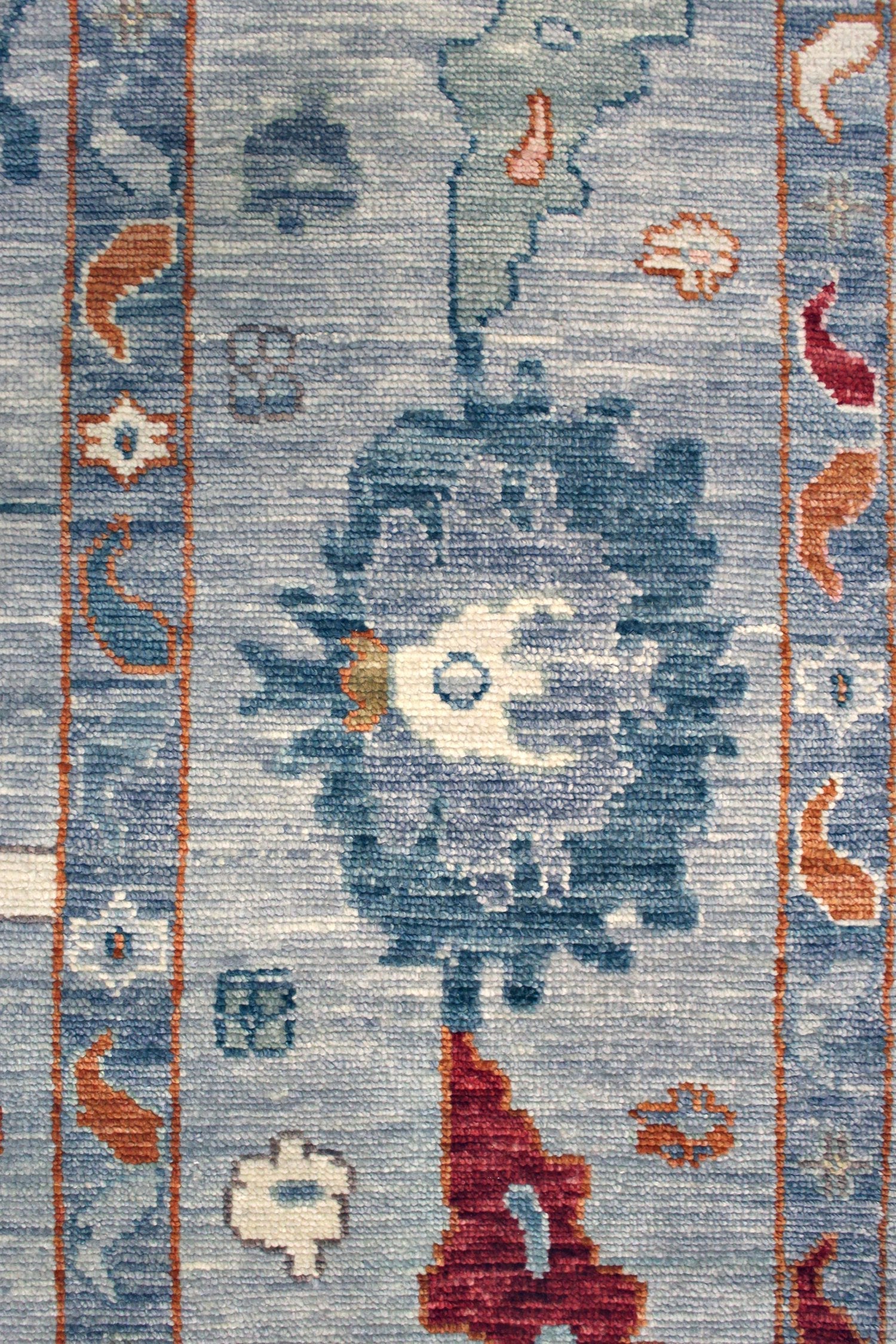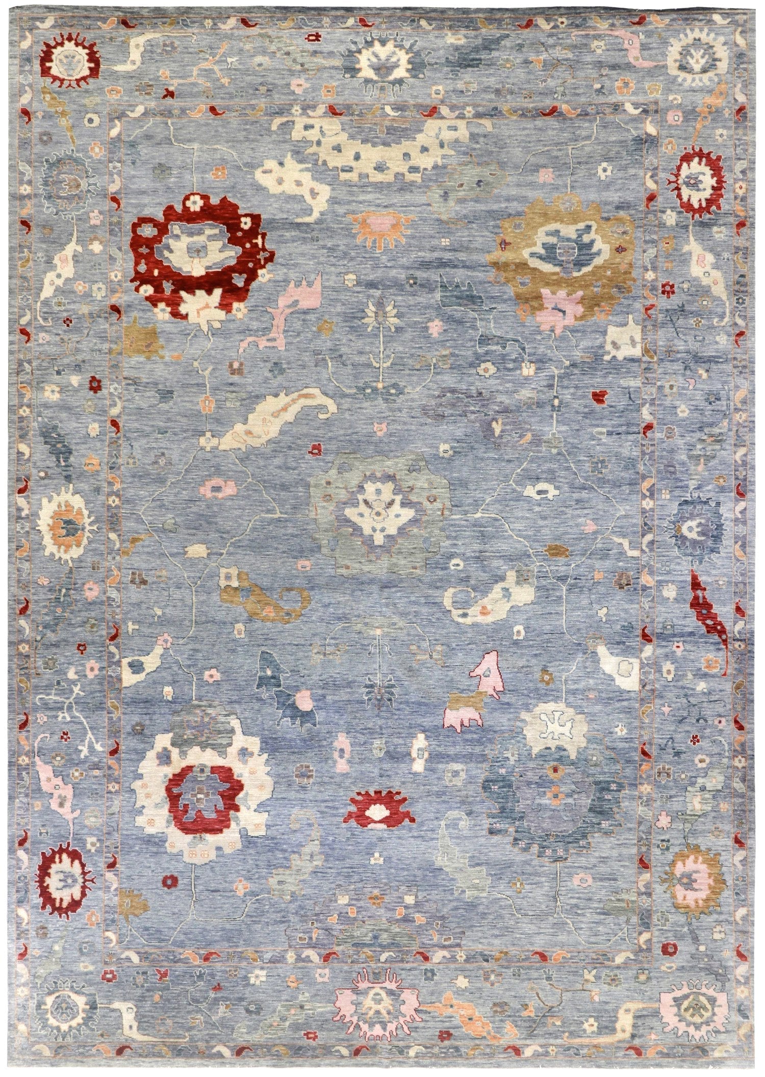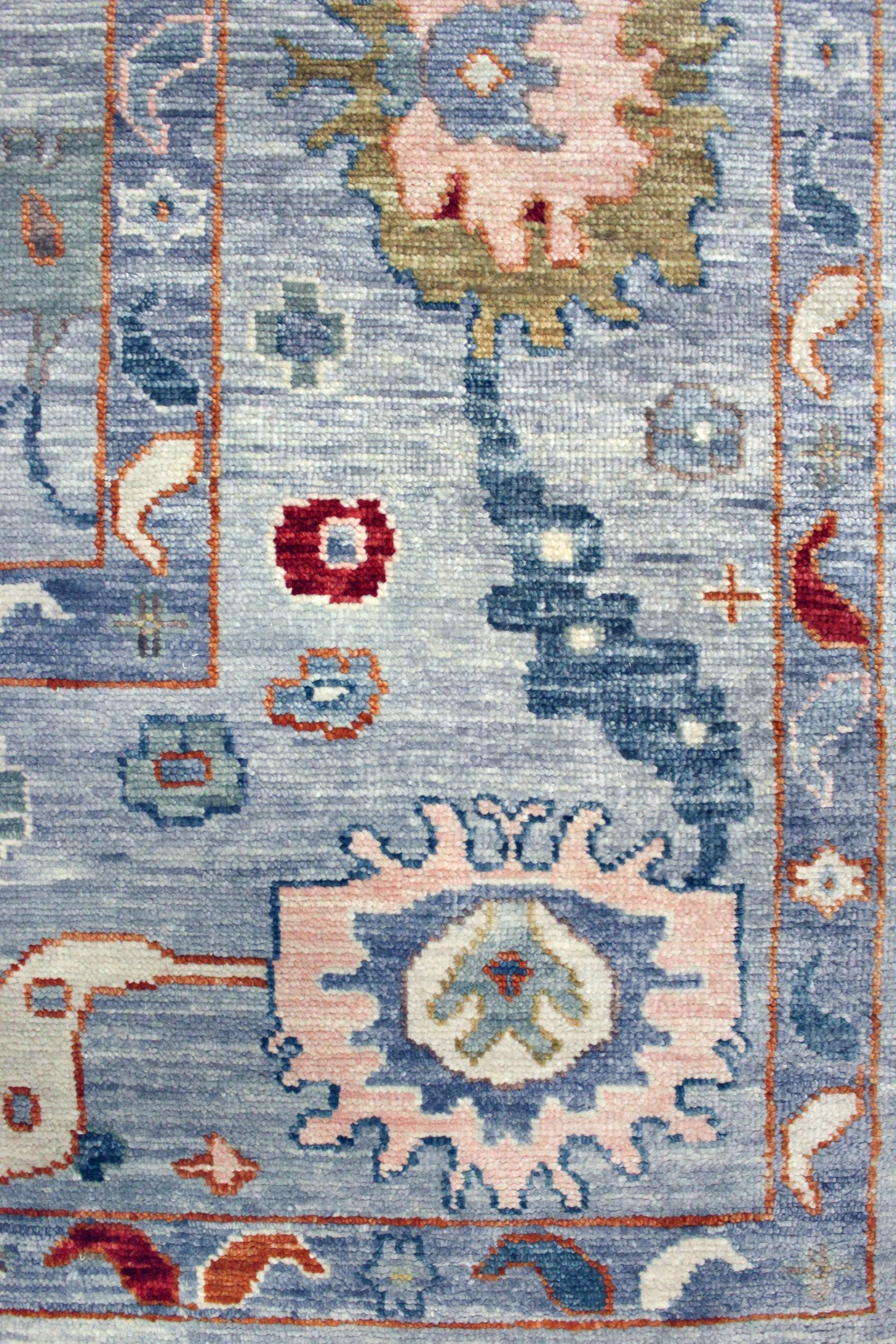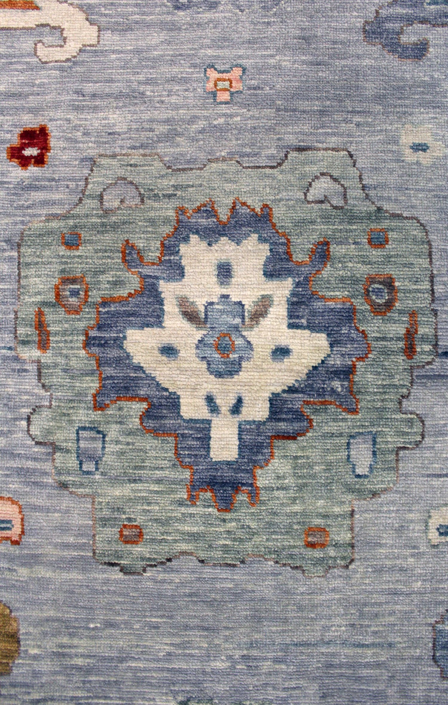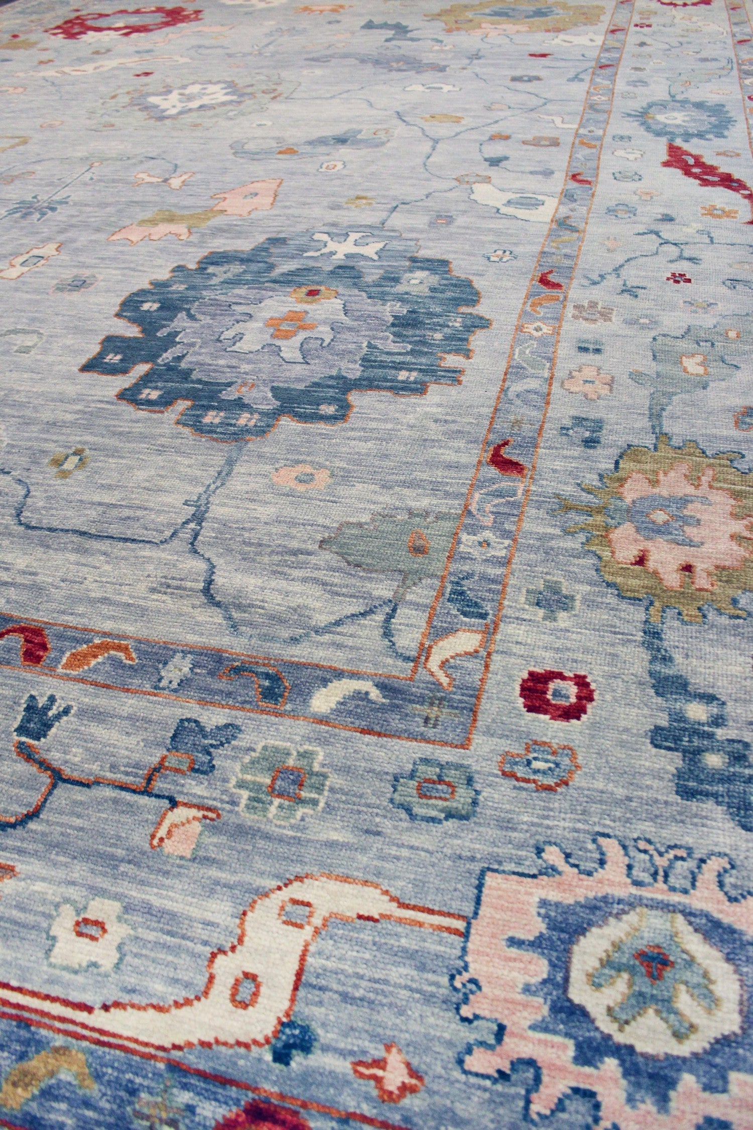 Soft Melody Oushak rugs hold particular appeal due to their resemblance to traditional 19th-century Turkish Oushaks, distinguished by their large knots. The incorporation of a single-ply, thick yarn contributes to their delightful nubby texture, particularly evident at the base of each knot. While traditional Oushaks often exhibit a worn appearance due to age, which adds depth and character, the Soft Melody Oushaks elegantly capture this aesthetic without compromising on visual charm.