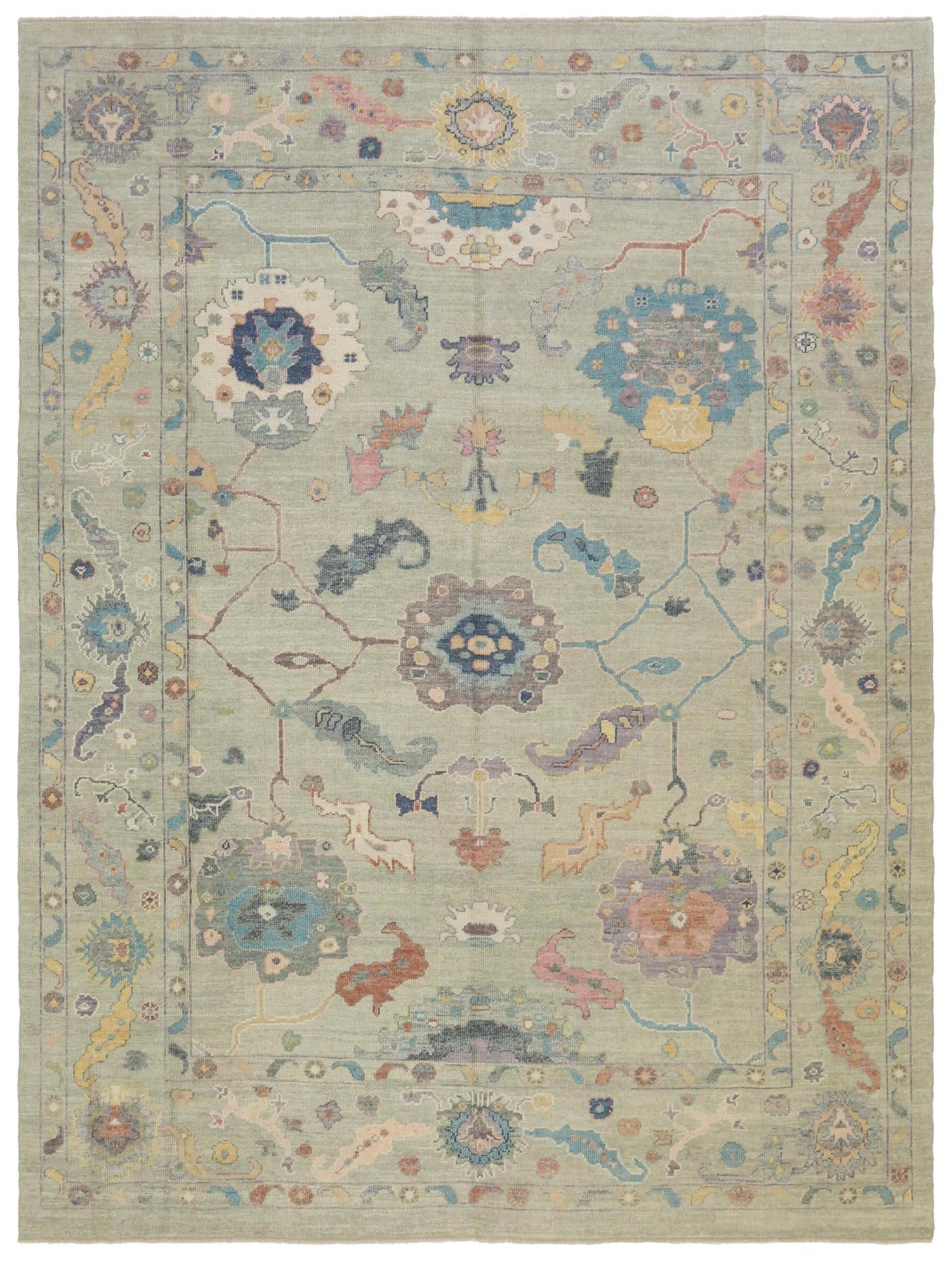 New Large Scale Floral Traditional Turkish Oushak 8' 11" X 11' 8" Green Rug