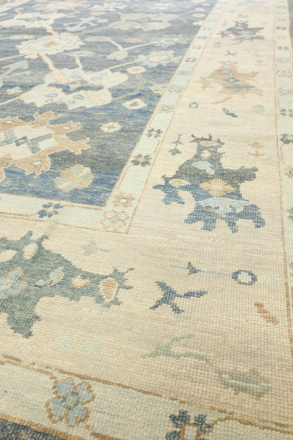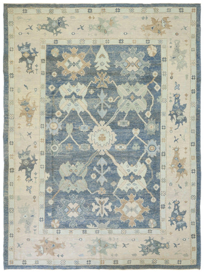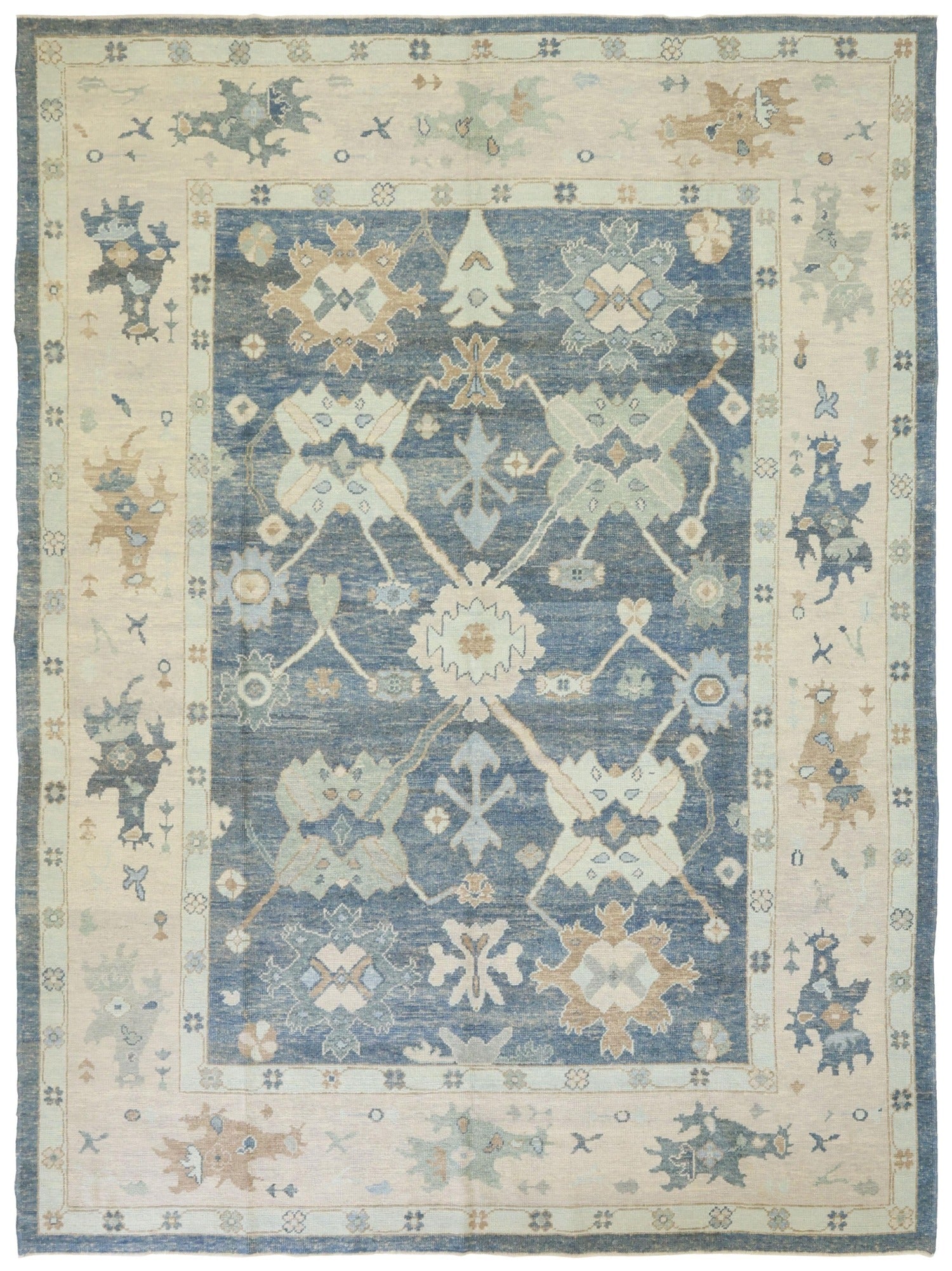 New Large Scale Floral Traditional Turkish Oushak 10' 4" X 13' 8" Blue Rug