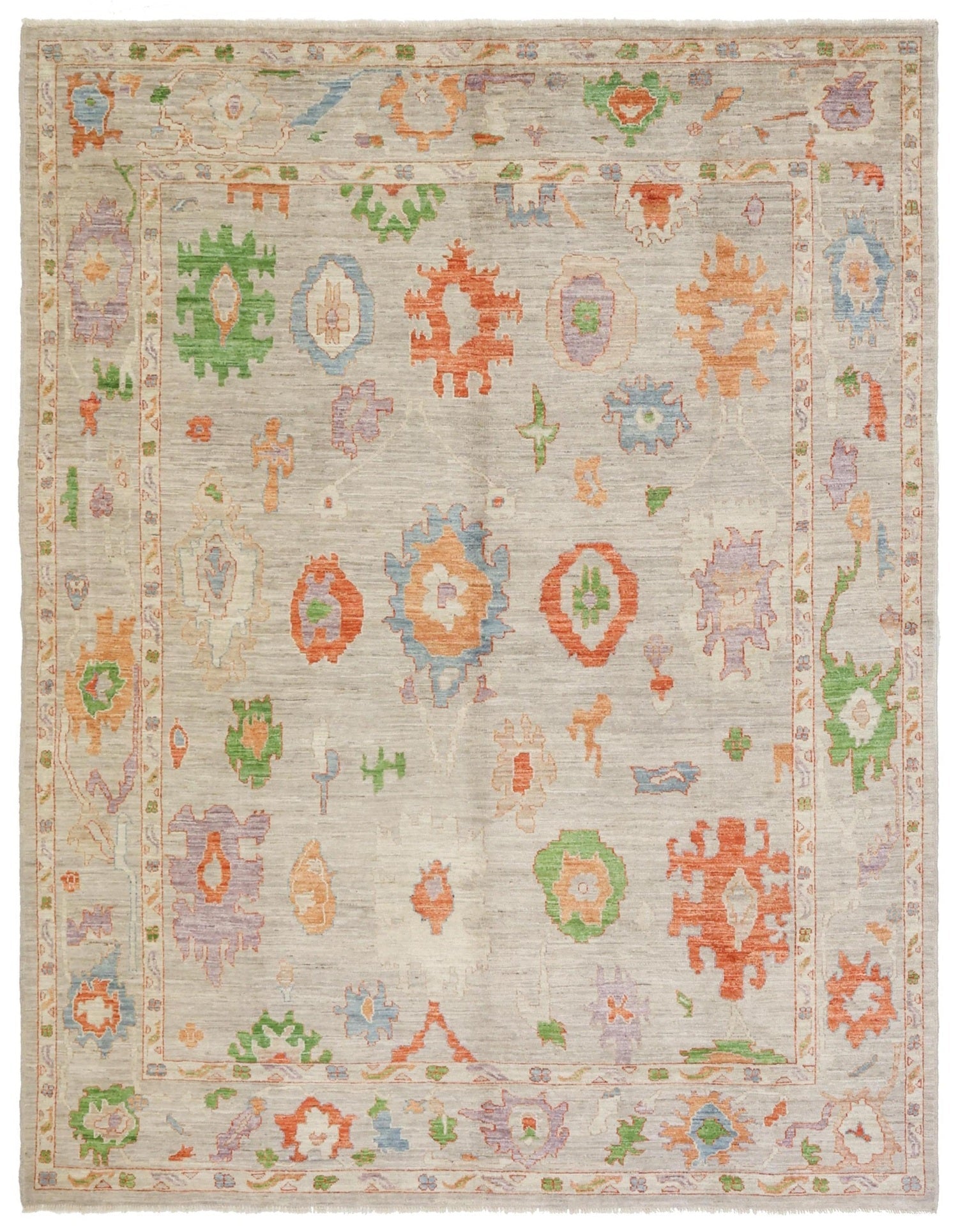 New Large Scale Floral Traditional Afghani Oushak 7' 10" X 9' 10" Grey Rug