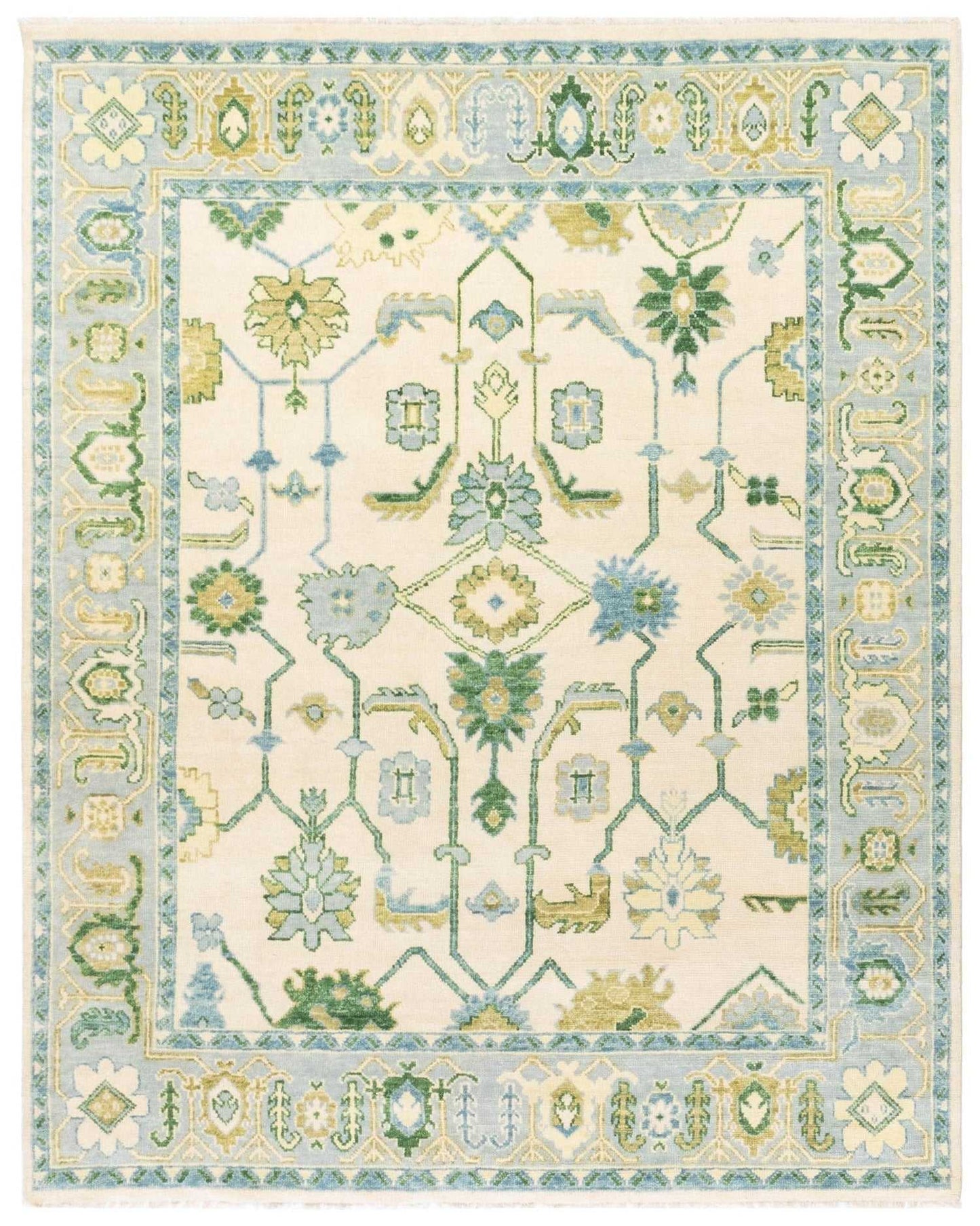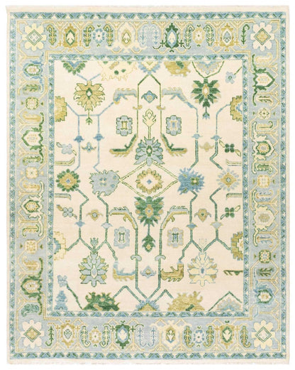 New Large Scale Floral Traditional Indian Oushak 7' 11" X 9' 11" Green Rug