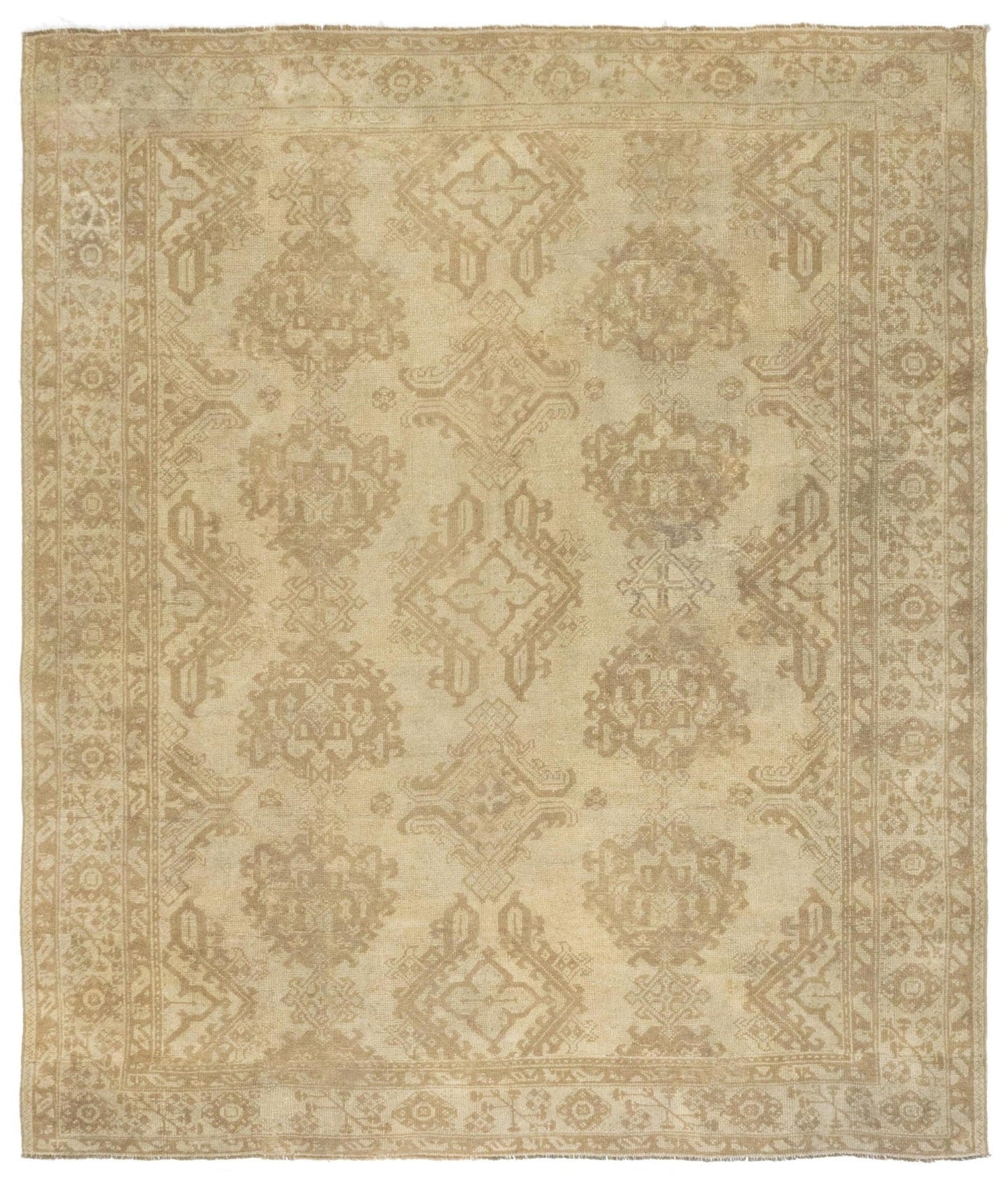 Vintage 1920 Nomadic Persian & Turkish Tribal Turkish Oushak 8' 9" X 10' 6" Beige Rug