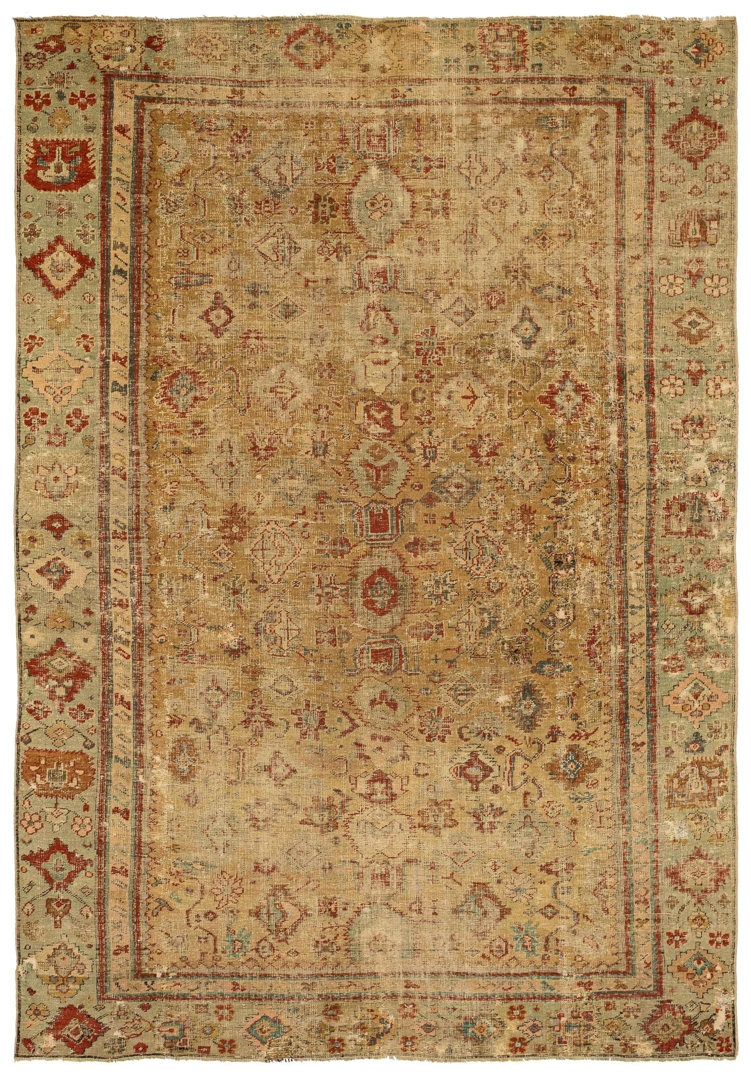 Vintage 1880 Nomadic Persian & Turkish Tribal Turkish Oushak 8' 5" X 12' 5" Yellow Rug