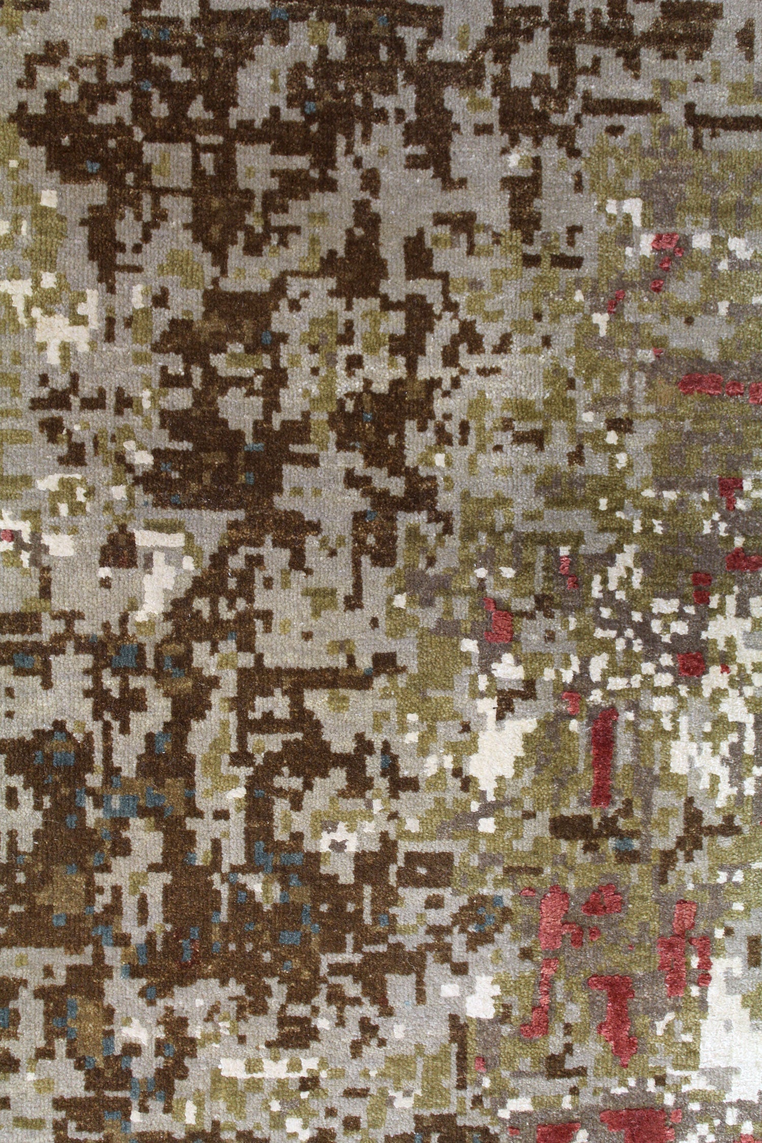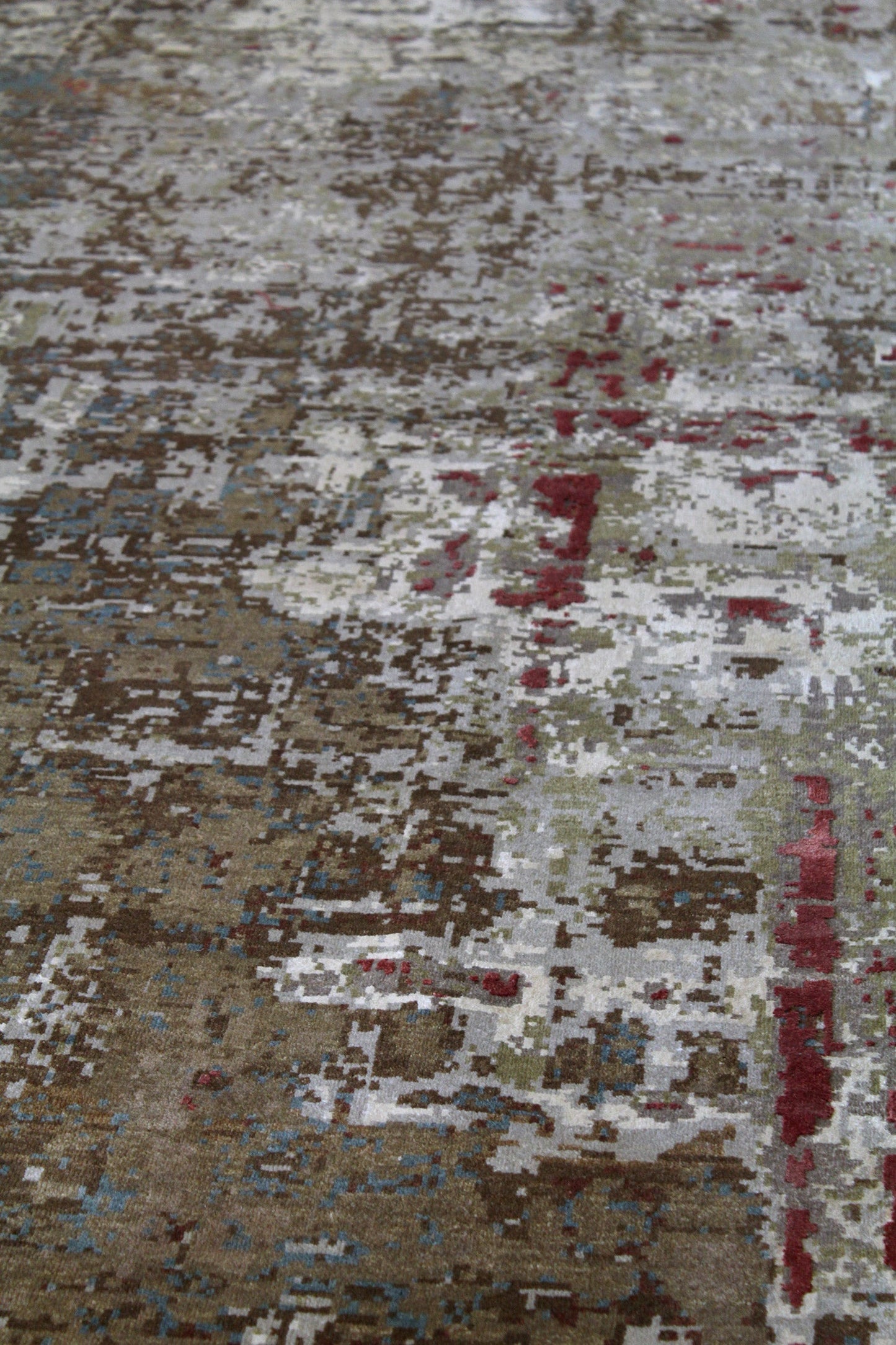 New Modern Abstract Contemporary Indain Patinated Look 3' 11" X 9' 11" Beige Rug