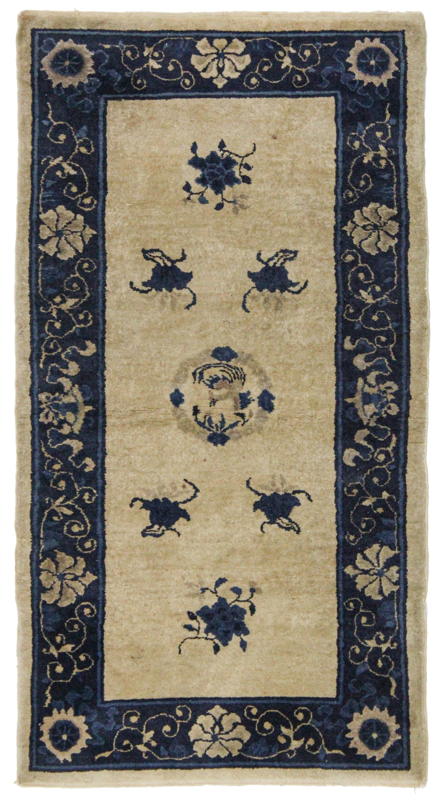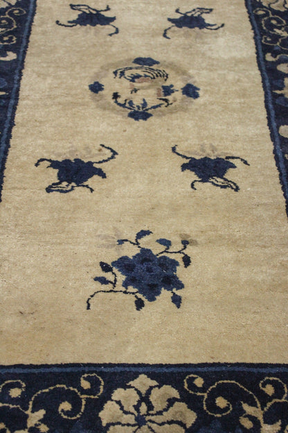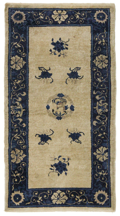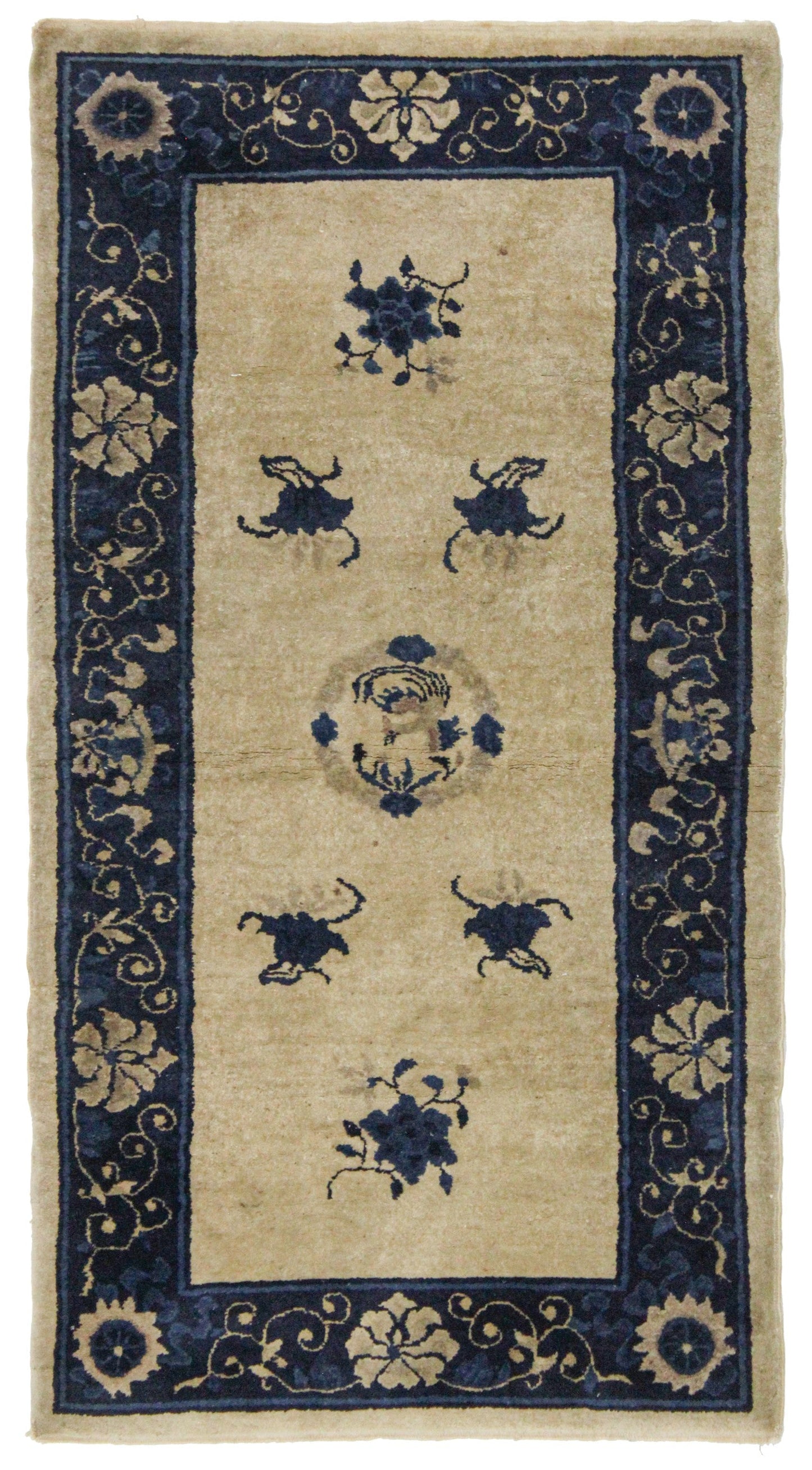 Antique 1910 Chinese & East Asian Traditional Chinese Peking 3' 2" X 5' 10" Blue Rug