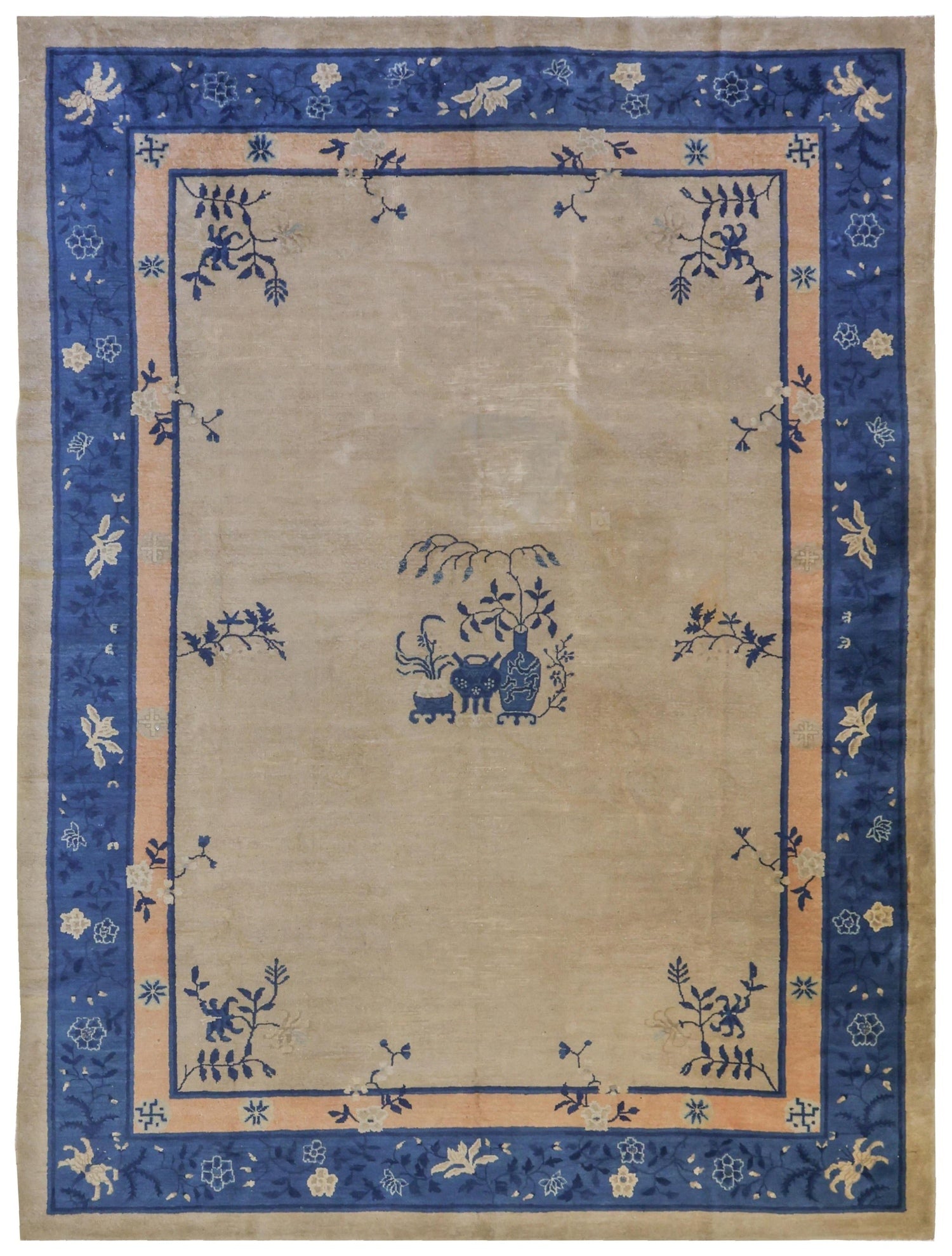 Vintage 1920 Chinese & East Asian Traditional Chinese Peking 9' 0" X 11' 8" Beige Rug
