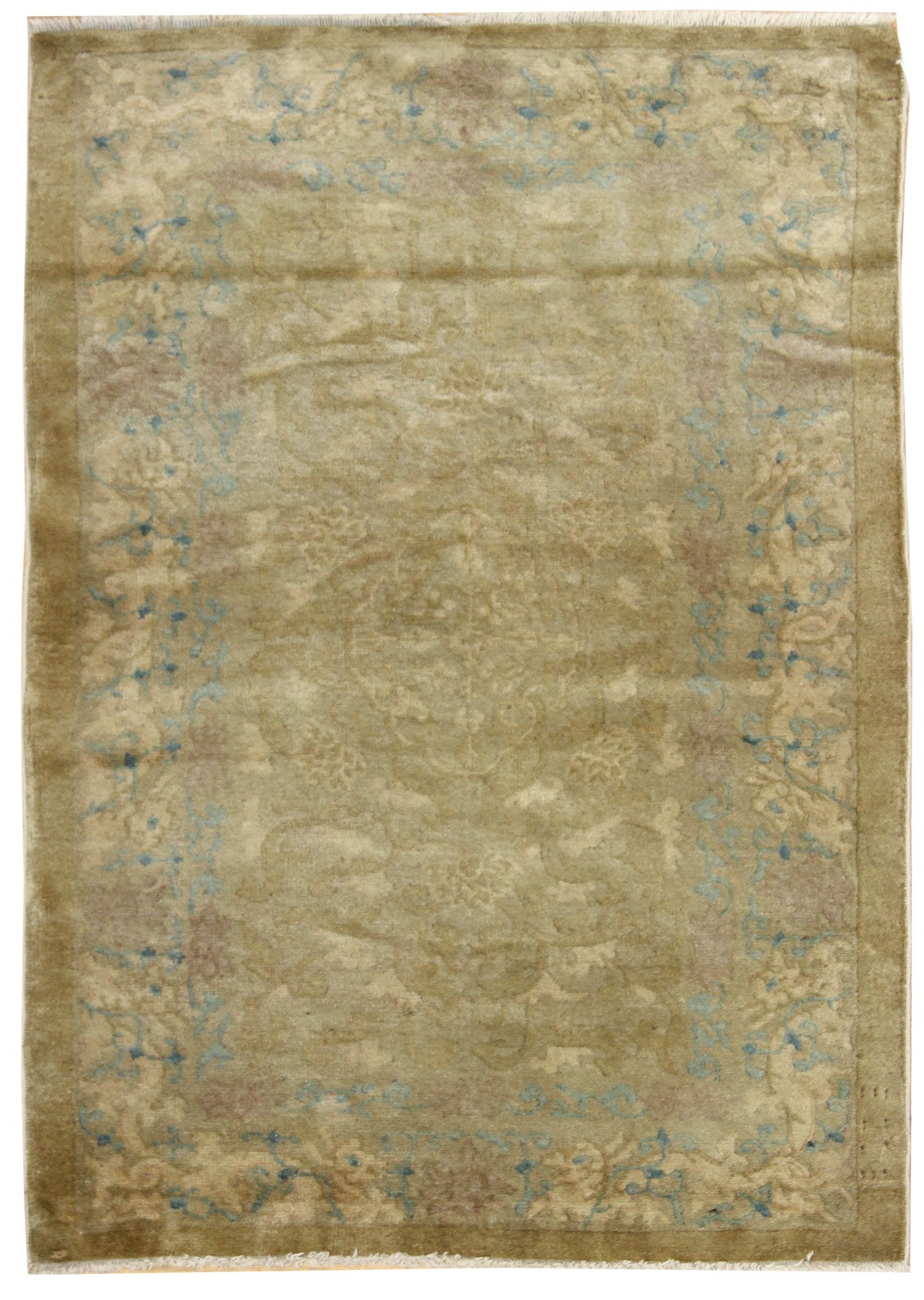 Antique Circa 1900 Chinese & East Asian Traditional Chinese Peking 3' 0" X 4' 10" Green Rug
