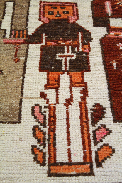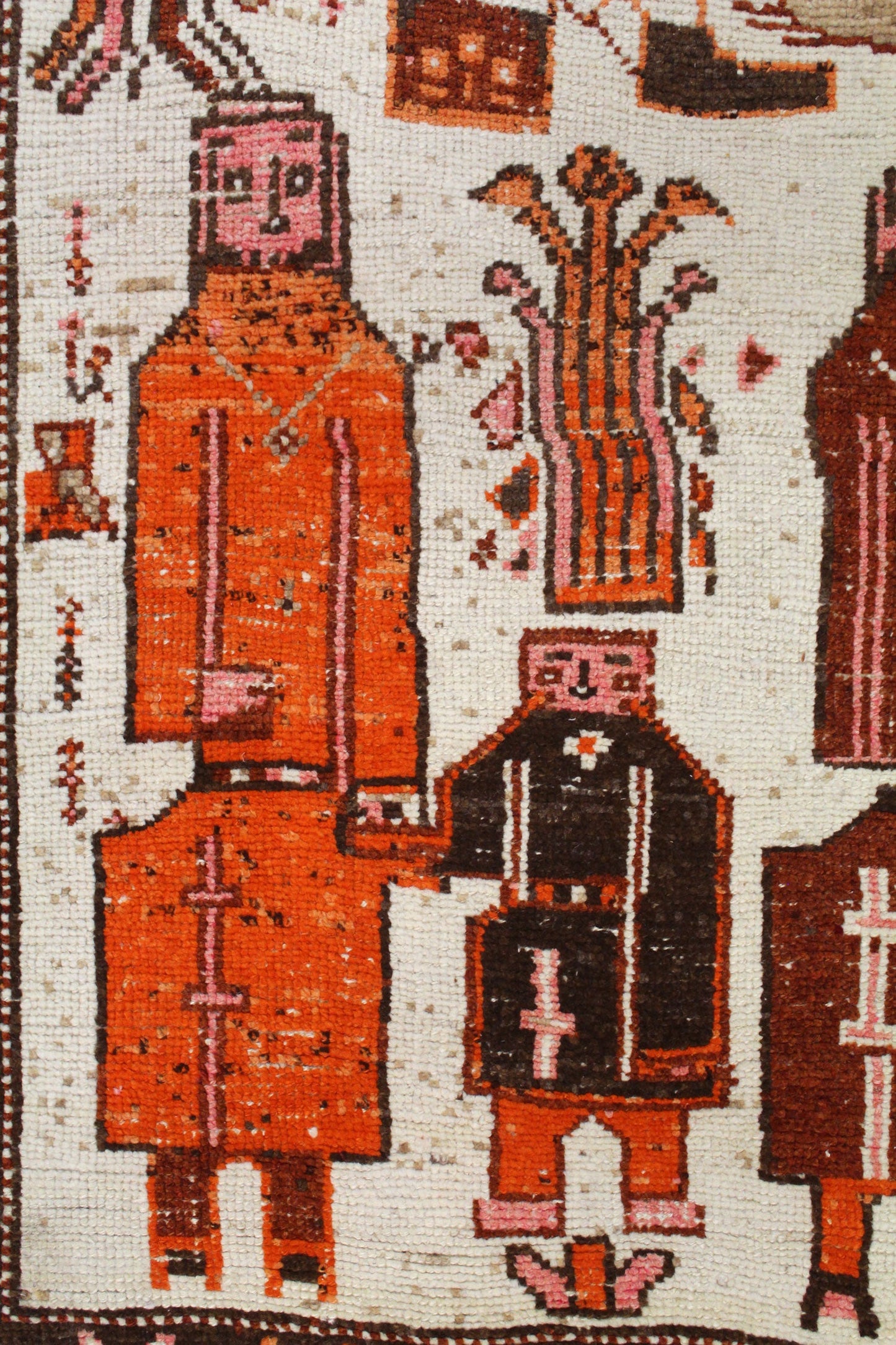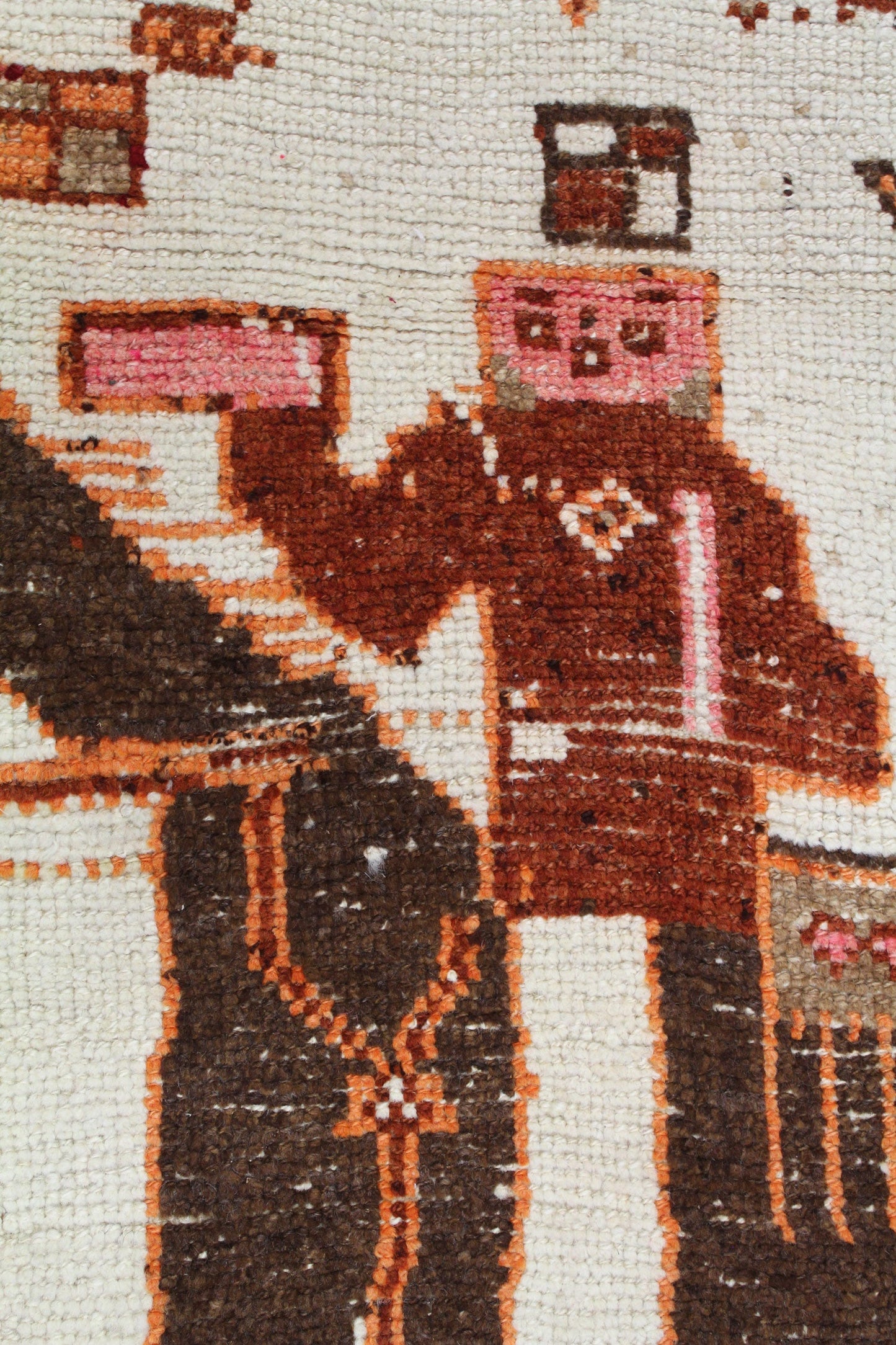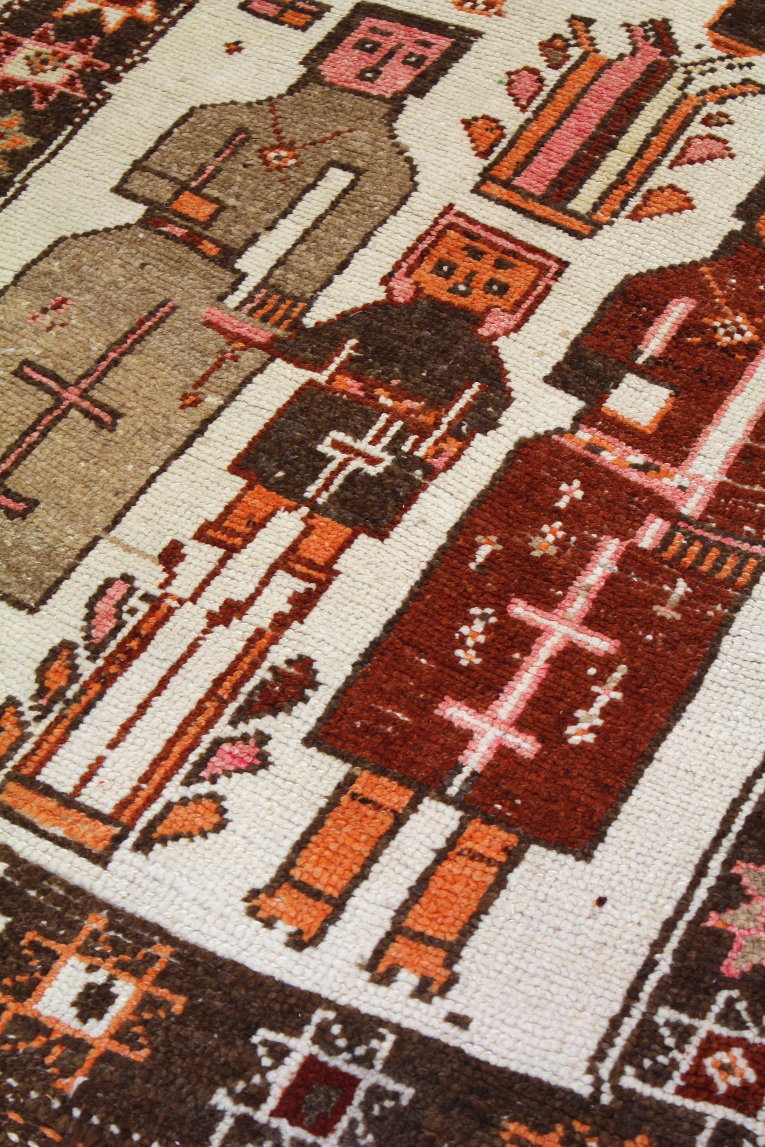 Vintage Pictorial Herki Handwoven Tribal Rug, J64563
