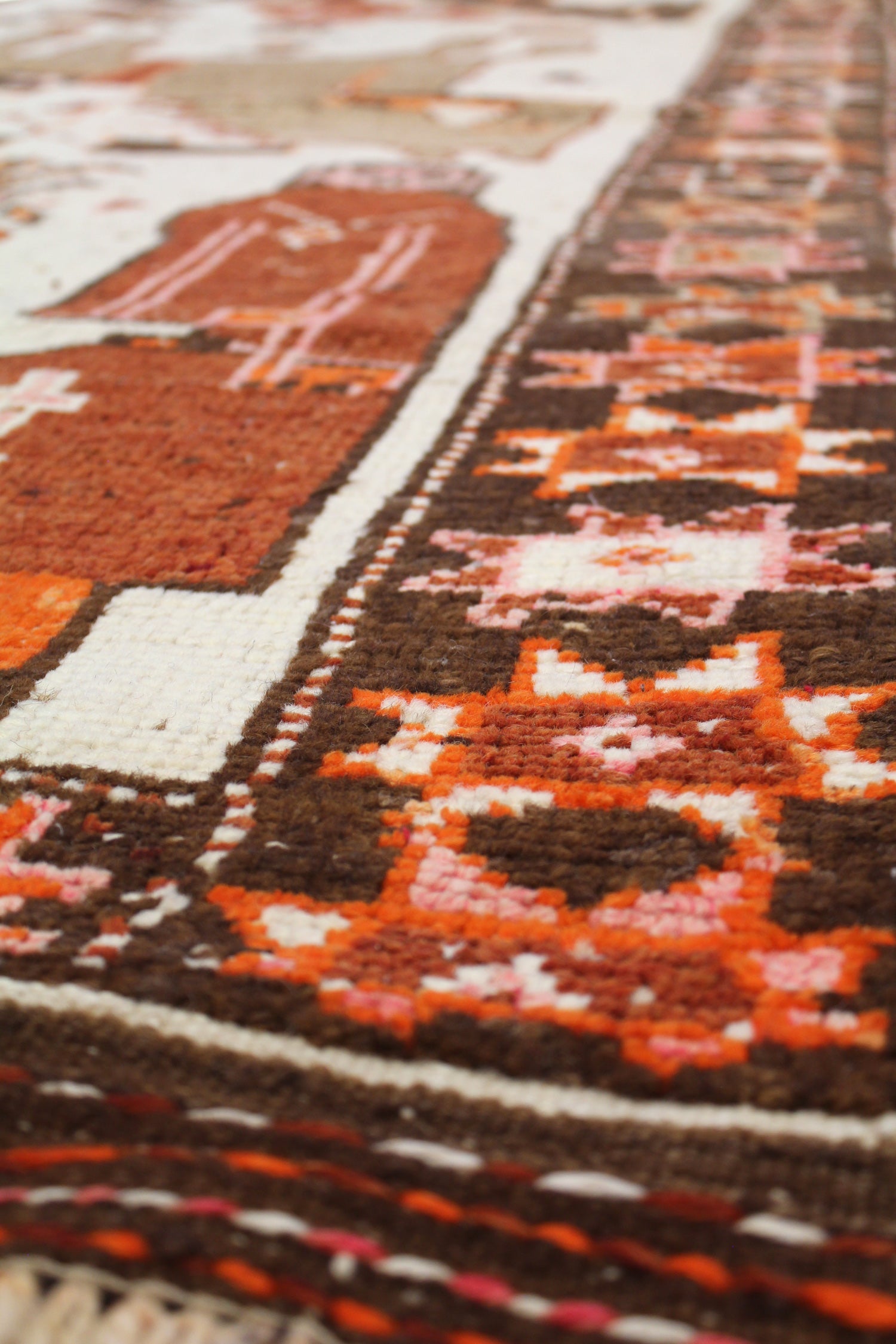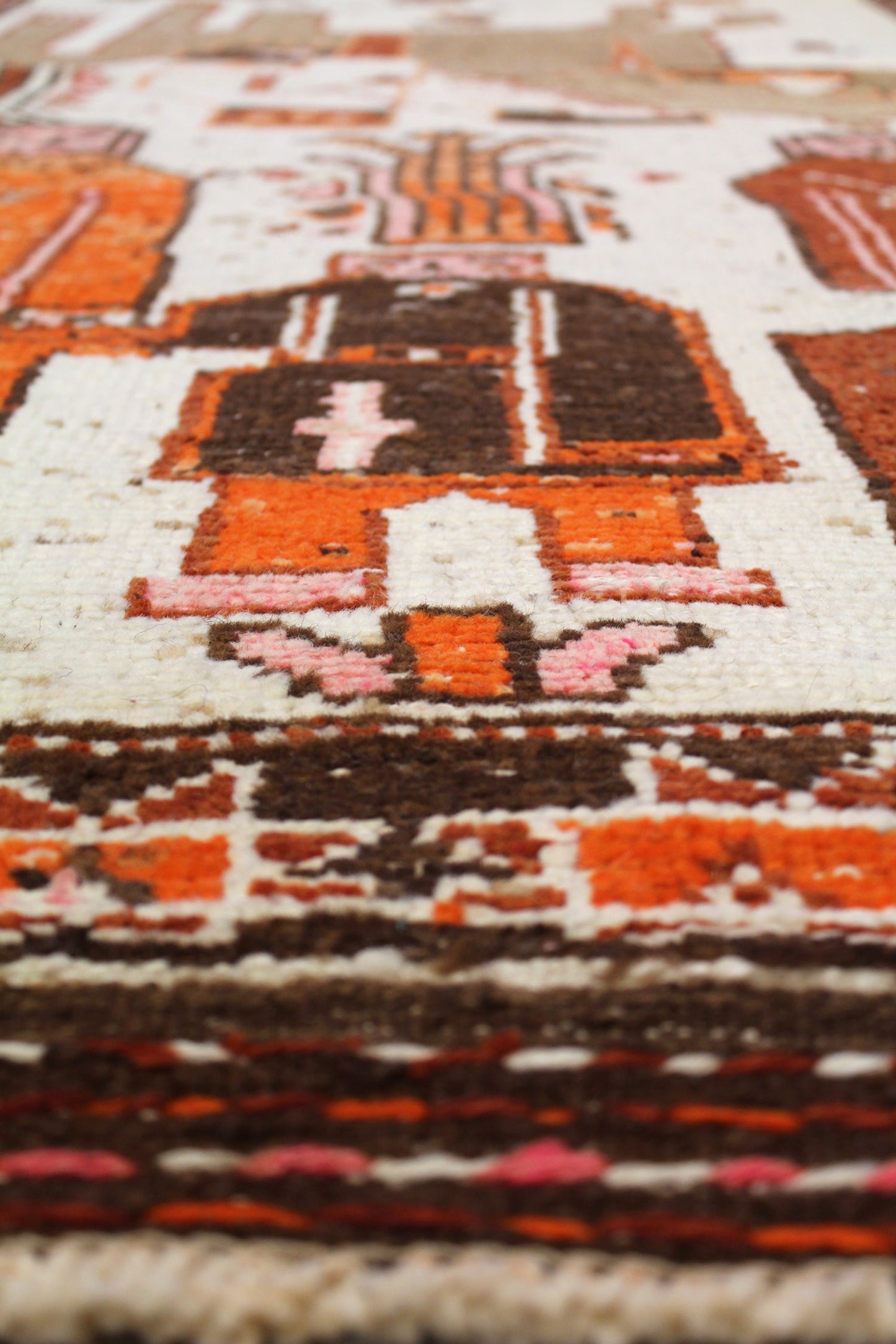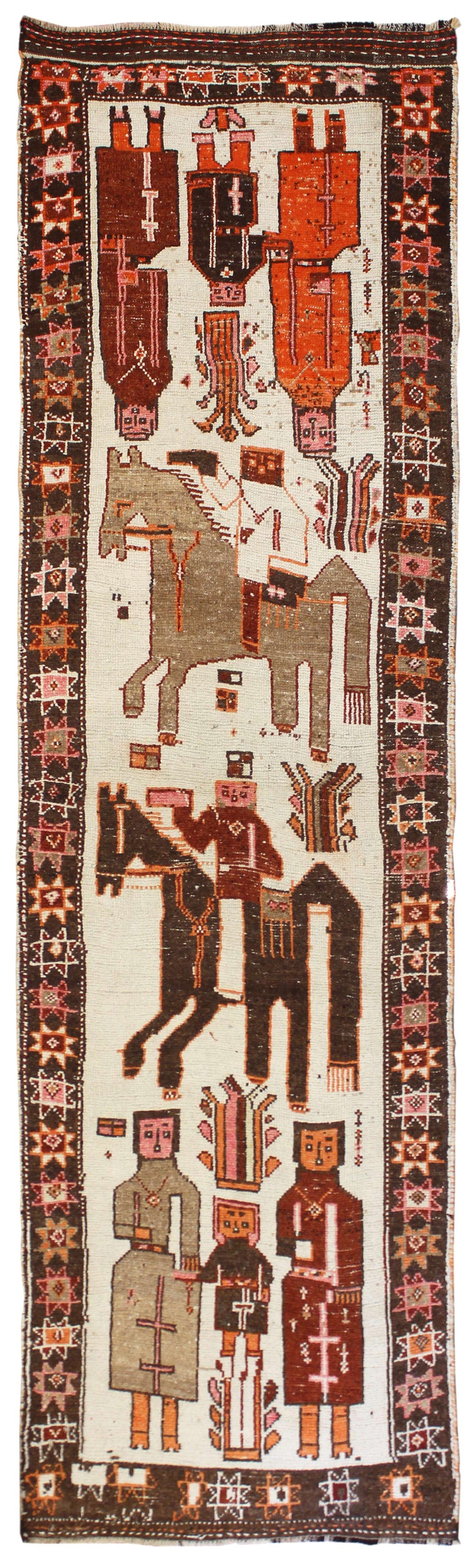 Show off your exquisite taste with our beautiful Vintage Pictorial Herki Handwoven Tribal Rug (J64563). It’s a prime example of a tribal Vintage Turkish Village done right and will add a unique, polished look to your space. Crafted mainly in ivory and chocolate, the Pictorial Herki design really pops. The wool pile surface is resilient yet comfortable and the wool foundation provides a sturdy base. This 4' 0" X 12' 10" handwoven rug is of vintage construction (circa 1960) and Turkish origin. All in all, you’re going to love this piece and it’s going to be the perfect addition to your home. Make it happen today — with your own Vintage Pictorial Herki Handwoven Tribal Rug.
