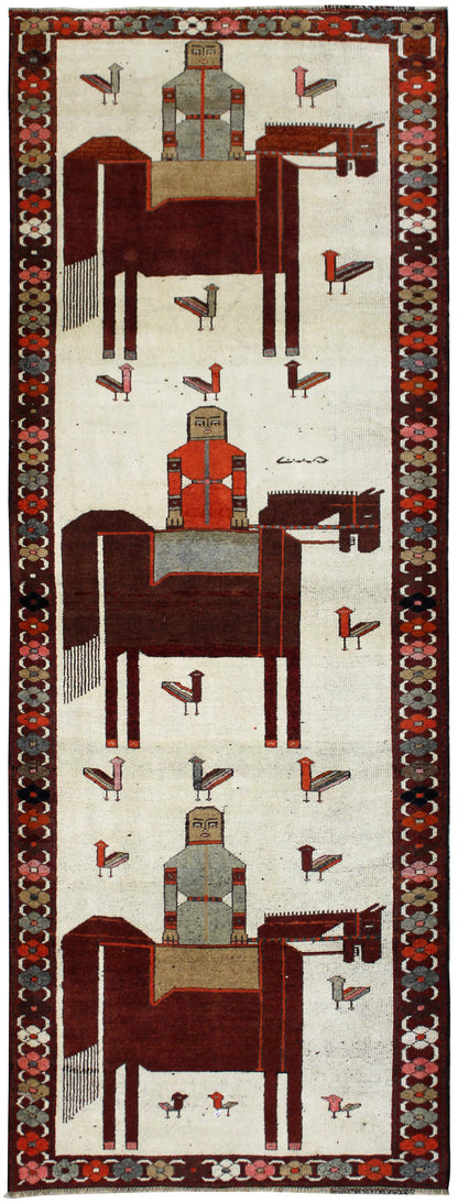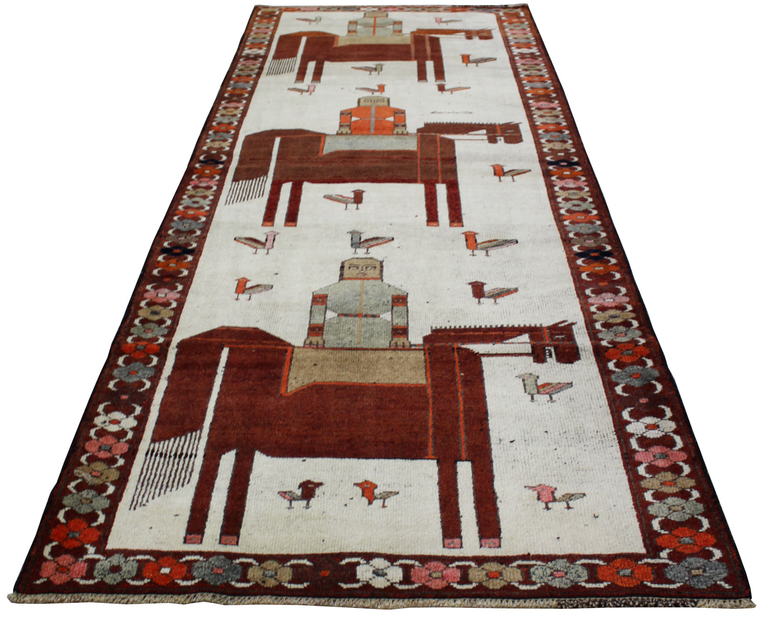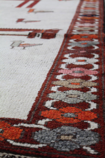 Show off your exquisite taste with our beautiful Vintage Pictorial Herki Handwoven Tribal Rug (J64564). It’s a prime example of a tribal Vintage Turkish Village done right and will add a unique, polished look to your space. Crafted mainly in ivory and henna, the Pictorial Herki design really pops. The wool pile surface is resilient yet comfortable and the wool foundation provides a sturdy base. This 4' 4" X 11' 6" handwoven rug is of vintage construction (circa 1960) and Turkish origin. All in all, you’re going to love this piece and it’s going to be the perfect addition to your home. Make it happen today — with your own Vintage Pictorial Herki Handwoven Tribal Rug.