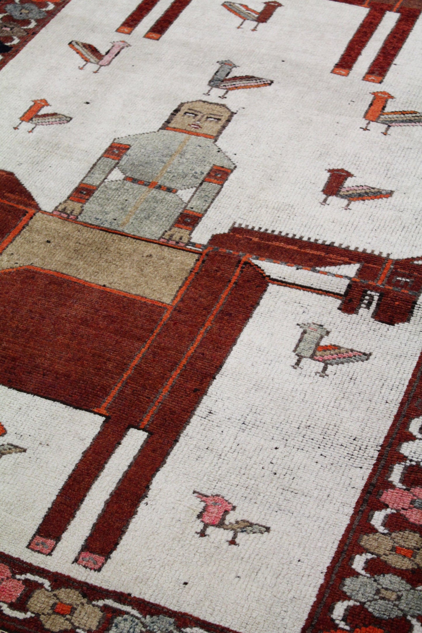 Vintage Pictorial Herki Handwoven Tribal Rug, J64564