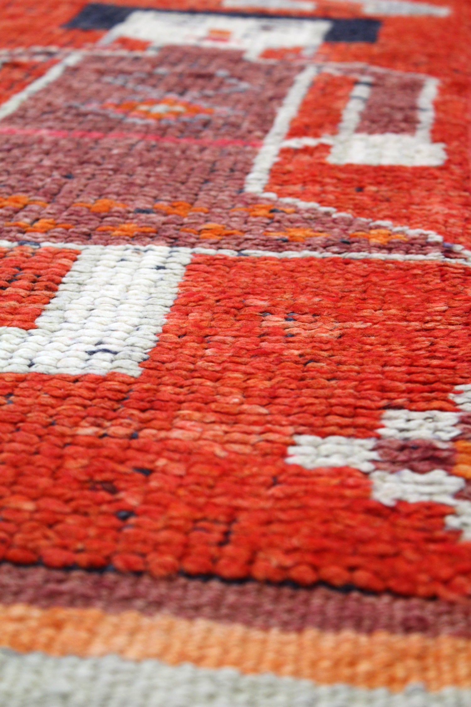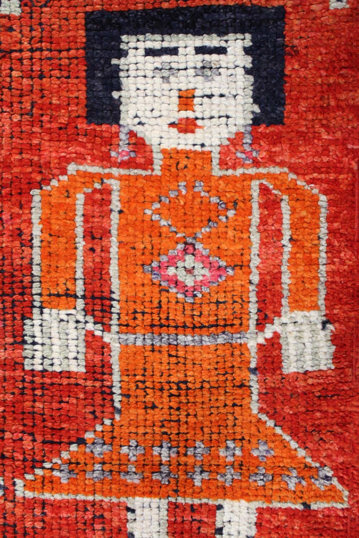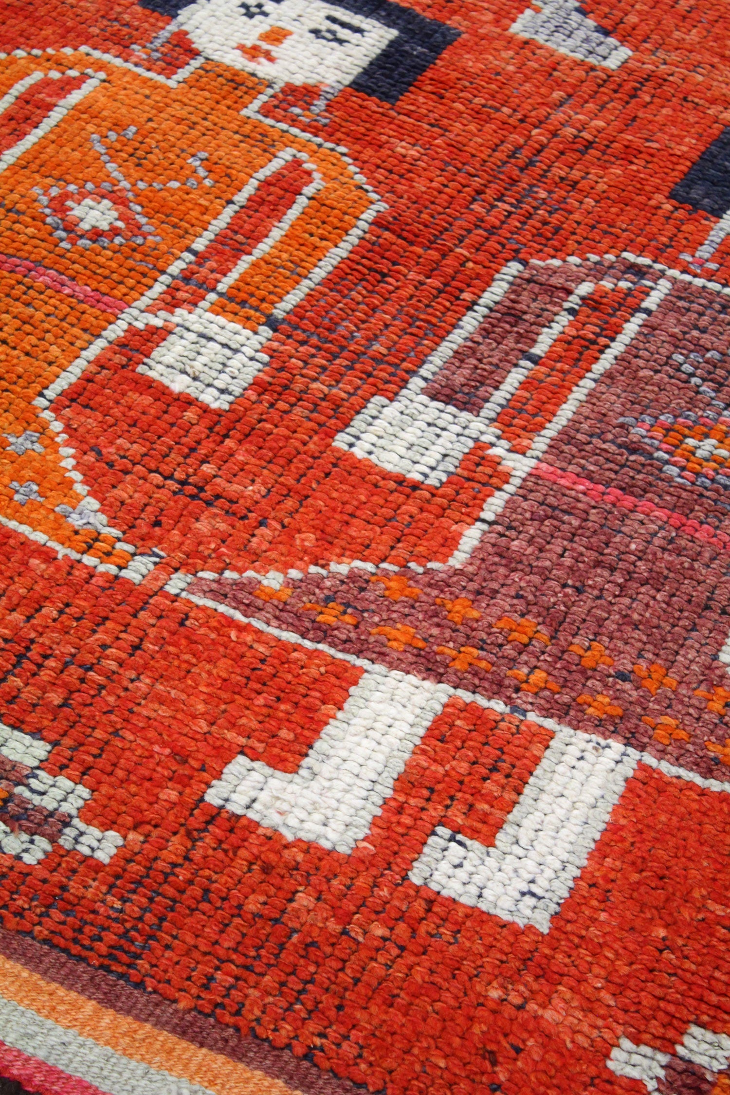 Show off your exquisite taste with our beautiful Vintage Pictorial Herki Handwoven Tribal Rug (J64566). It’s a prime example of a tribal Vintage Turkish Village done right and will add a unique, polished look to your space. Crafted mainly in orange and complemented with tangerine and raspberry, the Pictorial Herki design really pops. The wool pile surface is resilient yet comfortable and the wool foundation provides a sturdy base. This 3' 6" X 11' 0" handwoven rug is of vintage construction (circa 1960) and Turkish origin. All in all, you’re going to love this piece and it’s going to be the perfect addition to your home. Make it happen today — with your own Vintage Pictorial Herki Handwoven Tribal Rug.