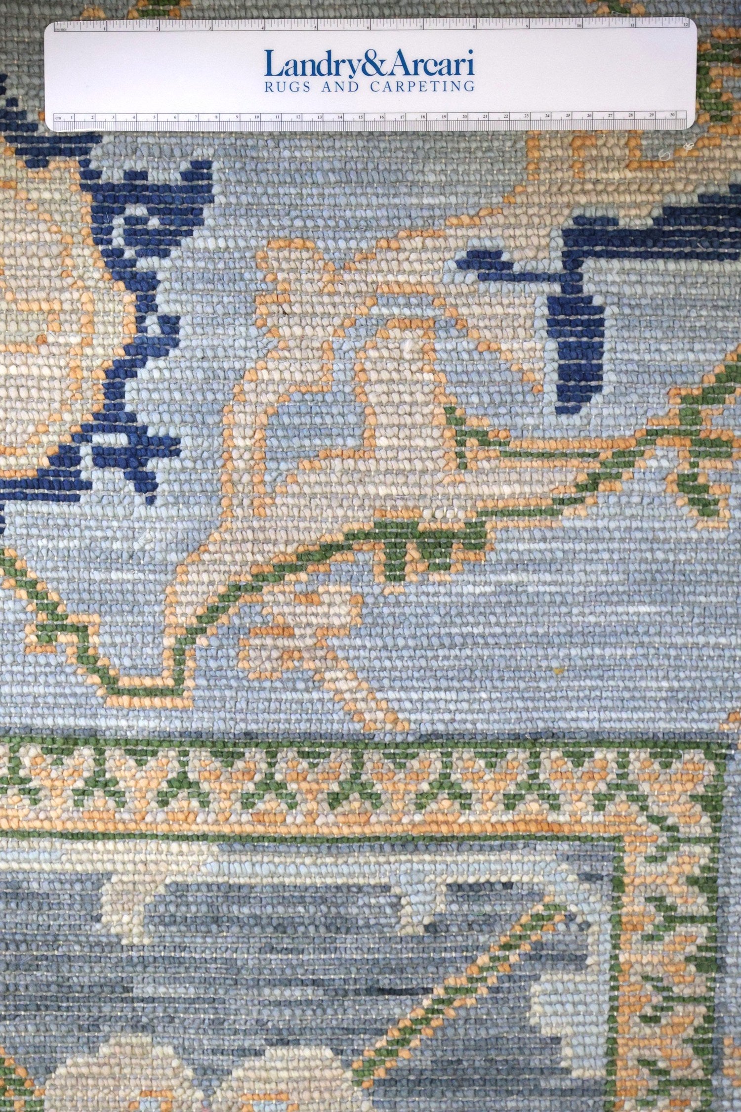 Constructed with a 100% wool pile and a cotton foundation, these rugs have tightly spun cotton warps and are mostly double-wefted. The pile height is approximately 3/8 inch, providing a plush feel. The handspun nature of the yarn creates subtle color variations, adding to the rug's unique aesthetic.