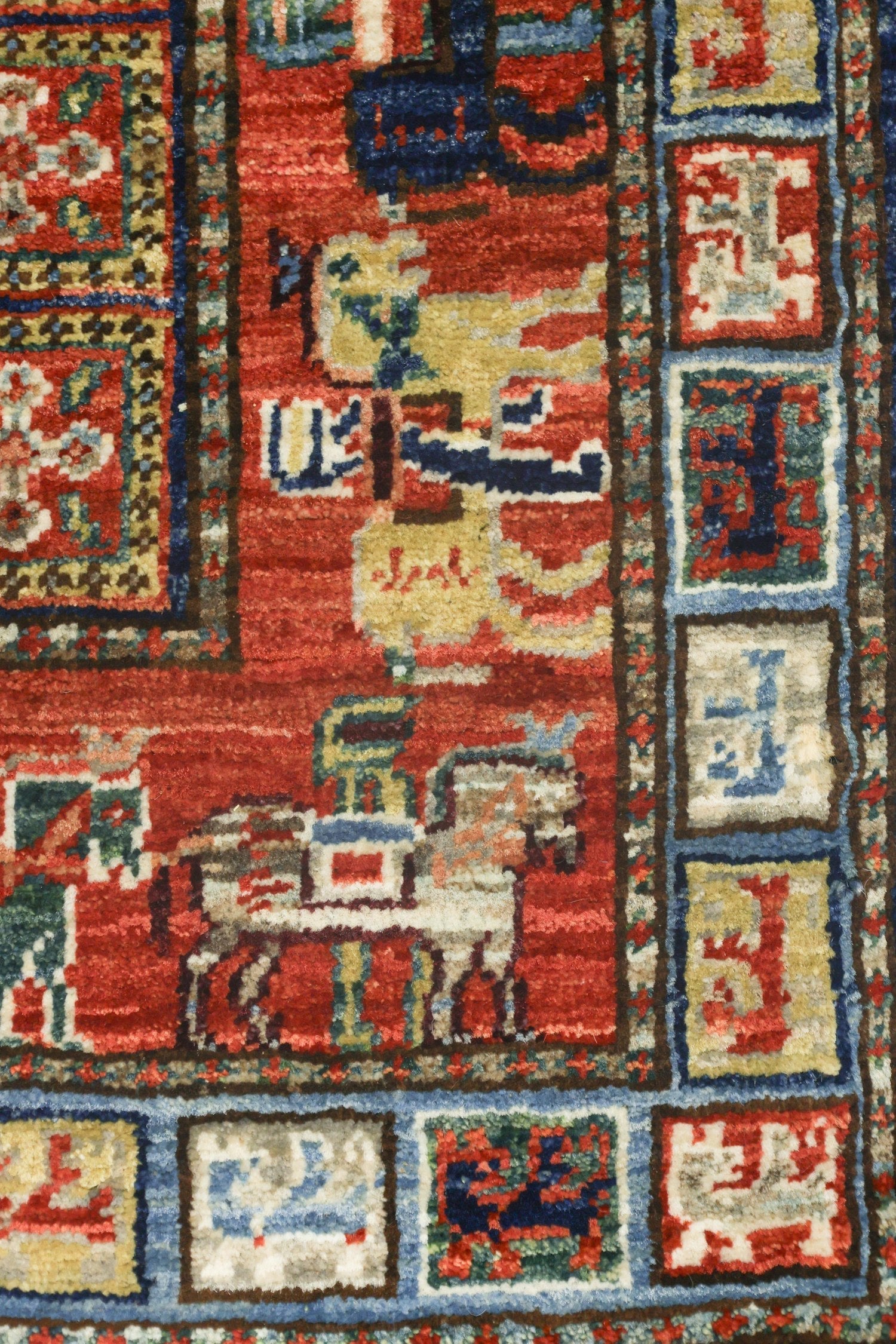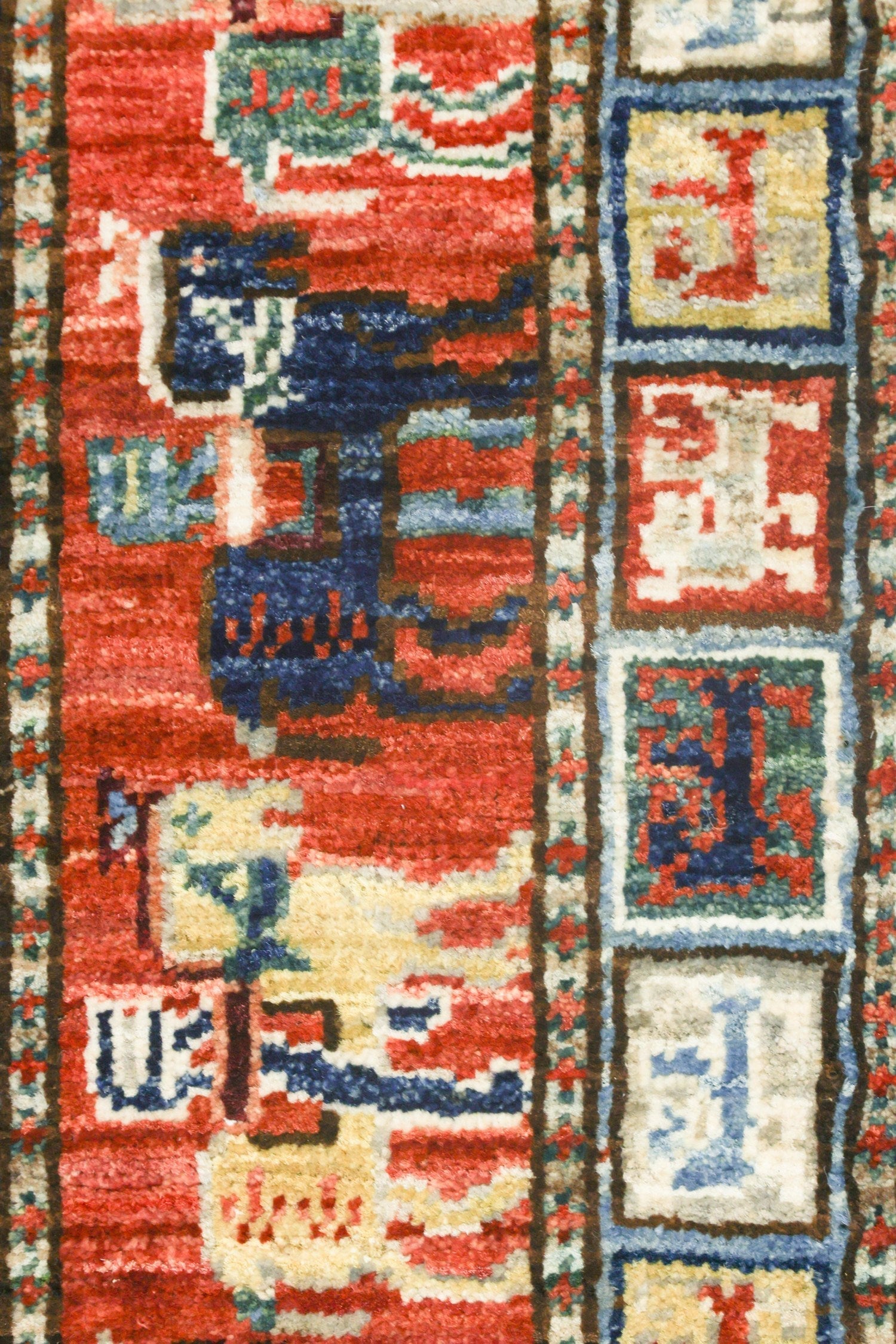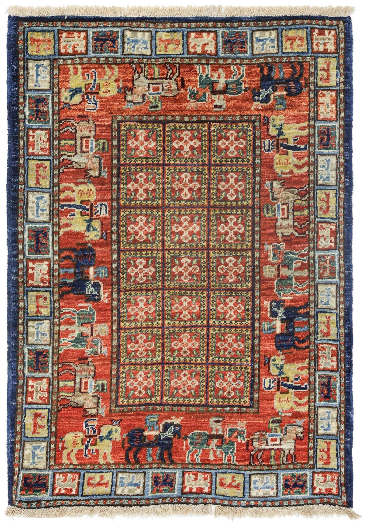 New Nomadic Persian & Turkish Tribal Afghani Pyzeryk 2' 0" X 2' 11" Red Rug