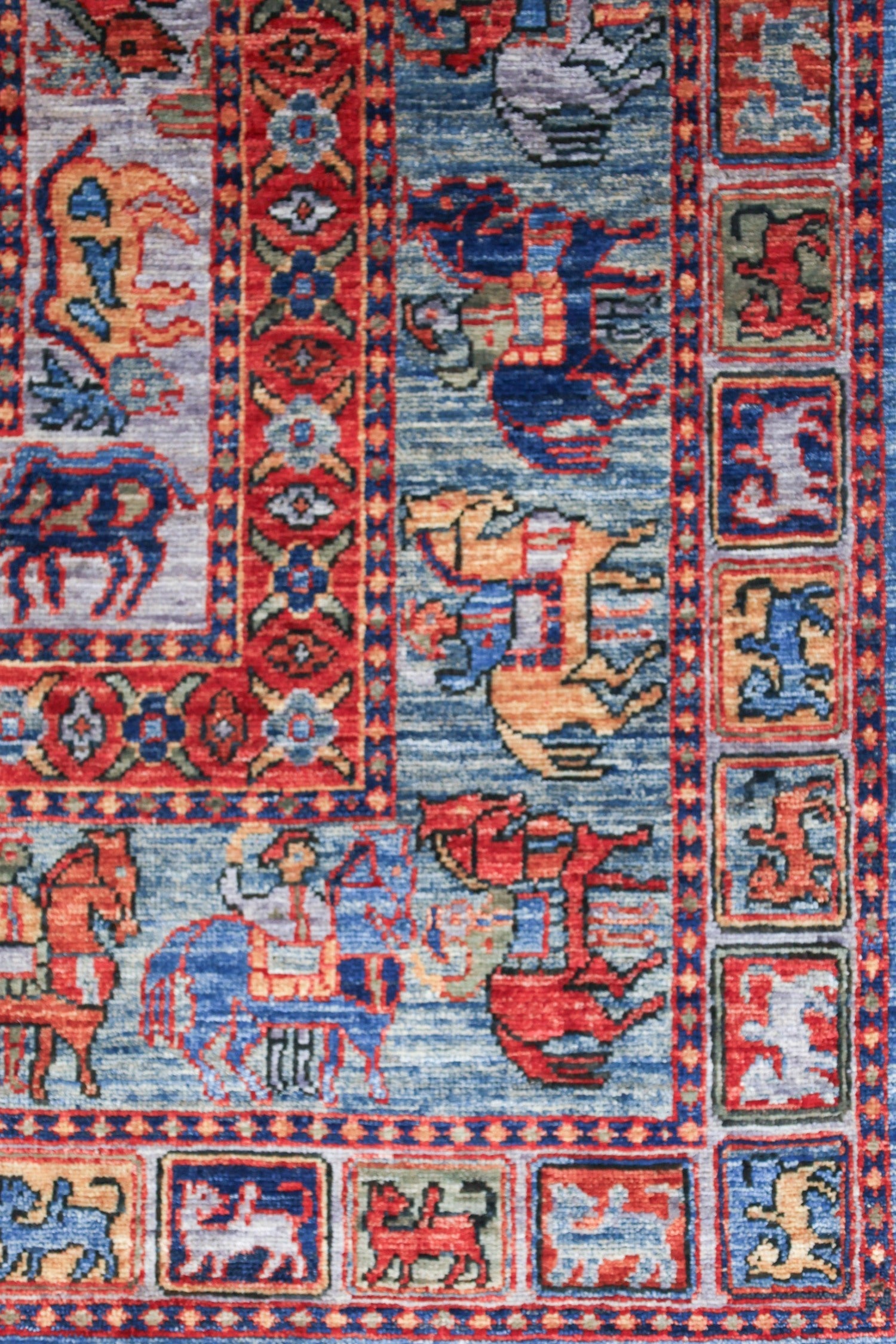 New Nomadic Persian & Turkish Tribal Afghani Pyzryk 6' 0" X 6' 2" Blue Rug