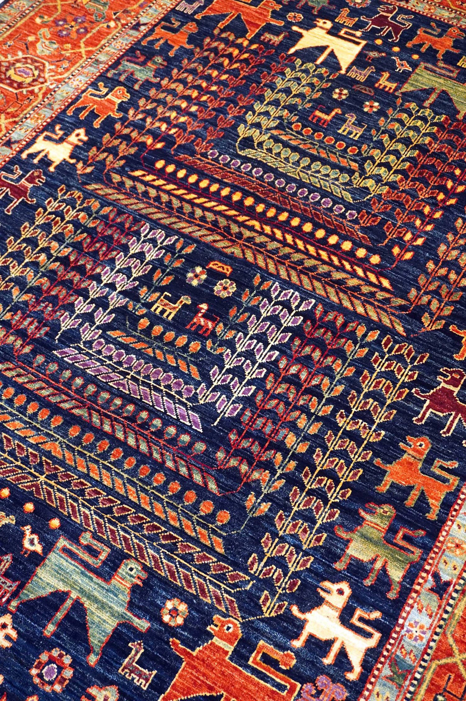Show off your exquisite taste with our beautiful Qashqai Handwoven Tribal Rug (J64445). It’s a prime example of a tribal Nomadic Persian & Turkish done right and will add a unique, polished look to your space. Crafted mainly in blue and complemented with navy and rust, the Qashqai design really pops. The wool pile surface is resilient yet comfortable and the cotton foundation provides a sturdy base. This 6' 4" X 8' 3" handwoven rug is of new construction and Afghani origin. All in all, you’re going to love this piece and it’s going to be the perfect addition to your home. Make it happen today — with your own Qashqai Handwoven Tribal Rug.