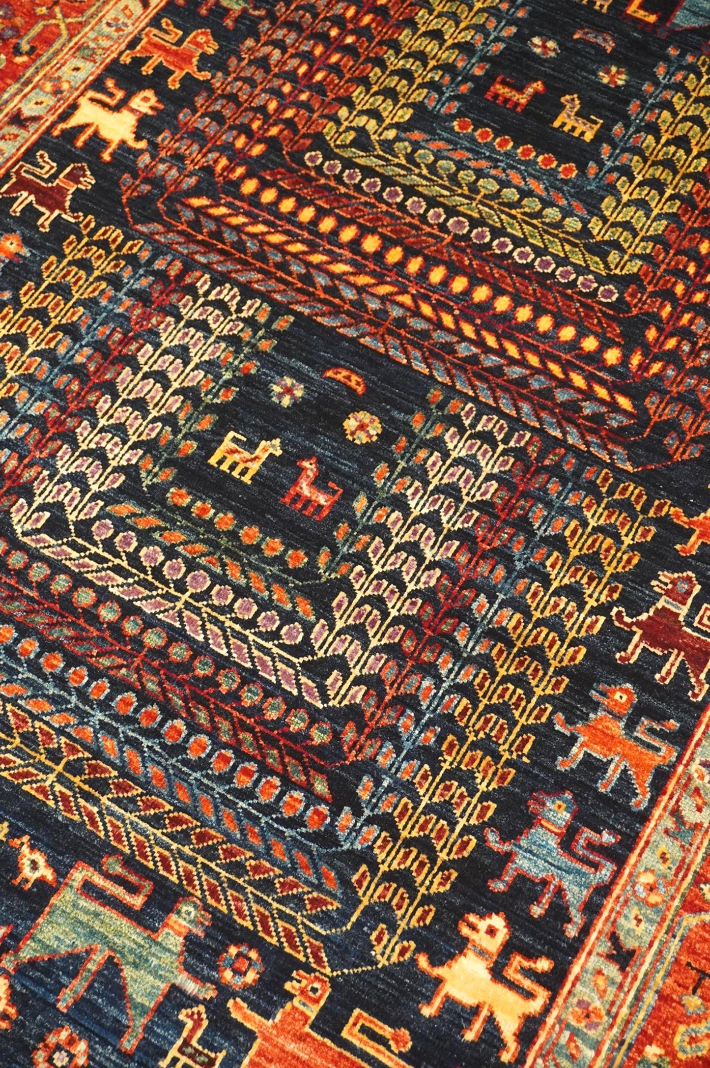 The origin of this remarkable rug lies in Afghanistan, specifically the Ghazni Province in the Southeast. It is here where the sheep graze on mountainous terrain, producing wool of exceptional quality. The raw Ghazni wool is then transported to the western side of Afghanistan, near Herat, where skilled weavers hand card and spin the wool into carpet yarn, ready for the weaving process.