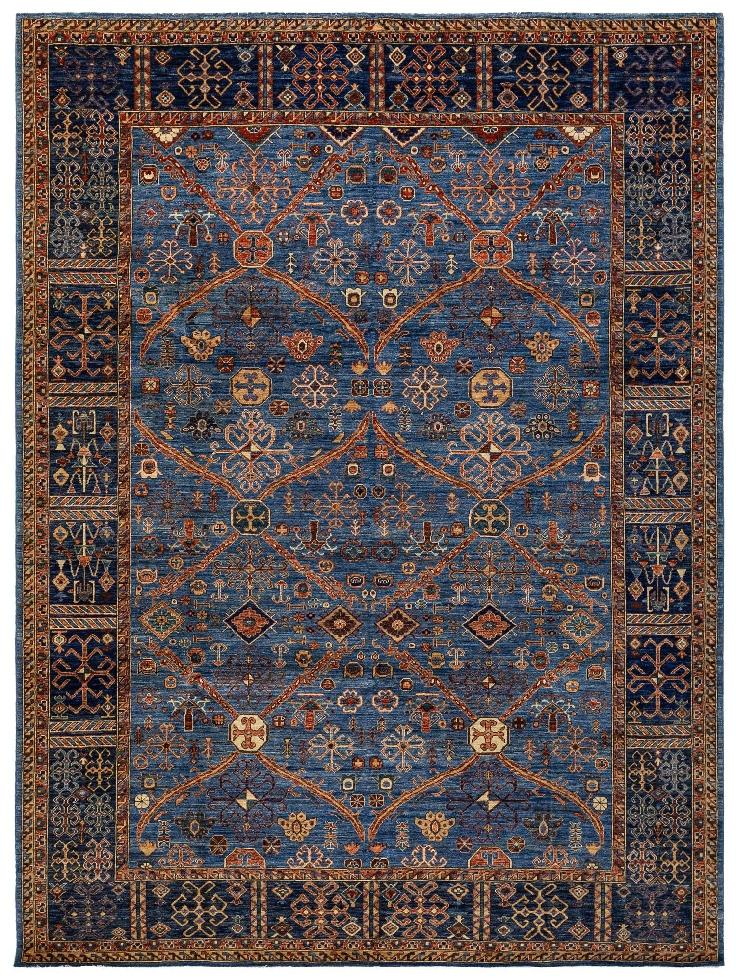 New Nomadic Persian & Turkish Tribal Afghani Qashqai 8' 10" X 11' 7" Blue Rug
